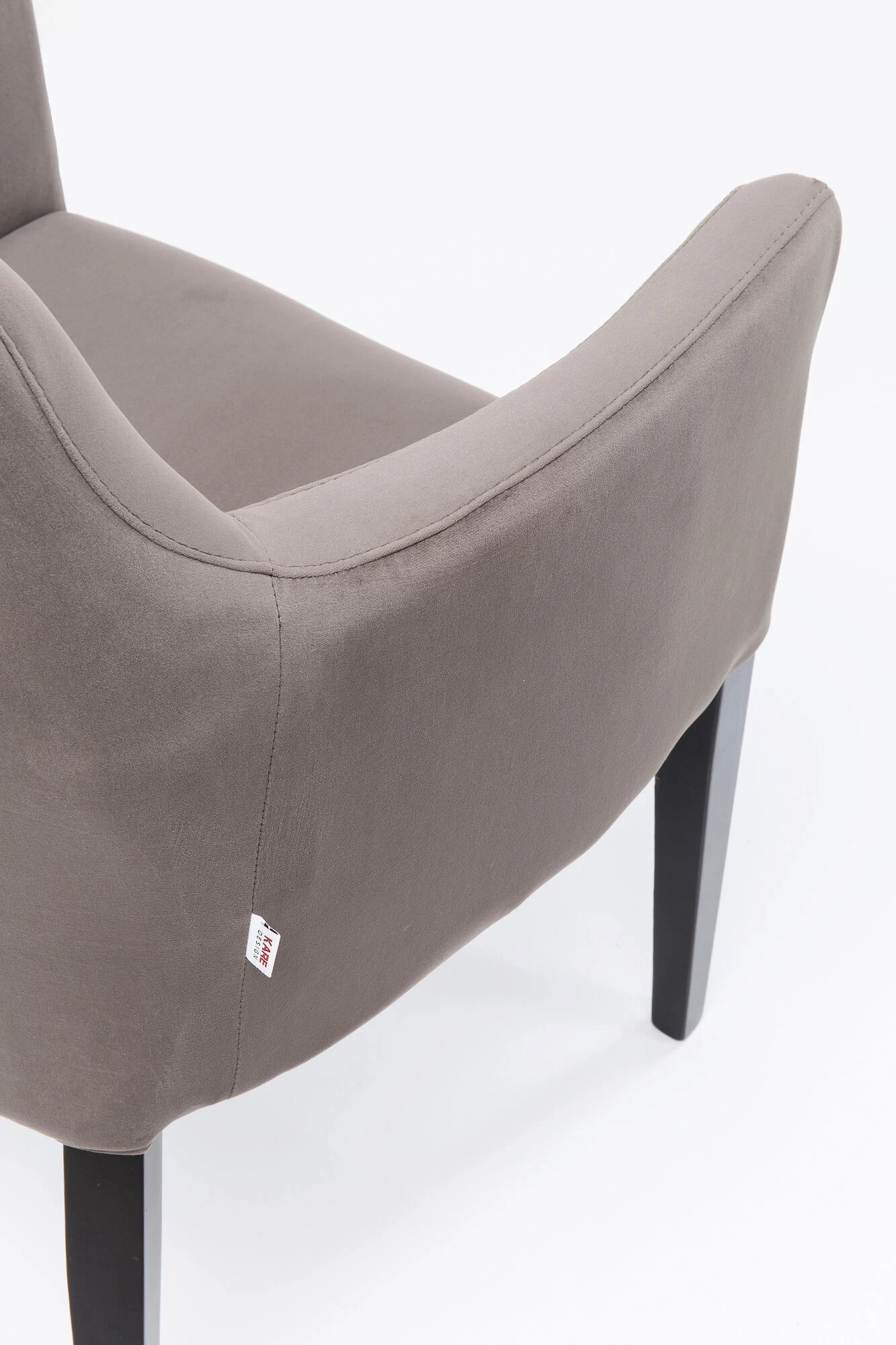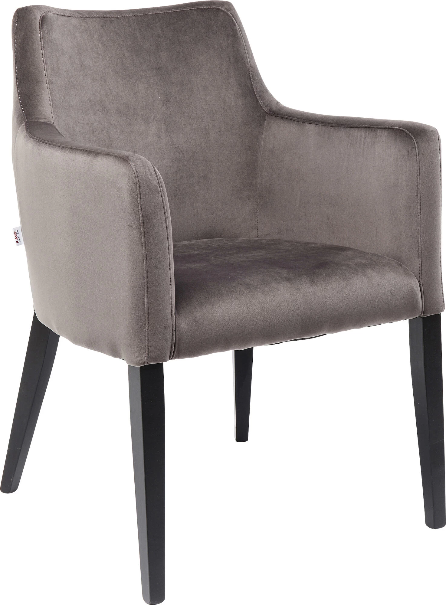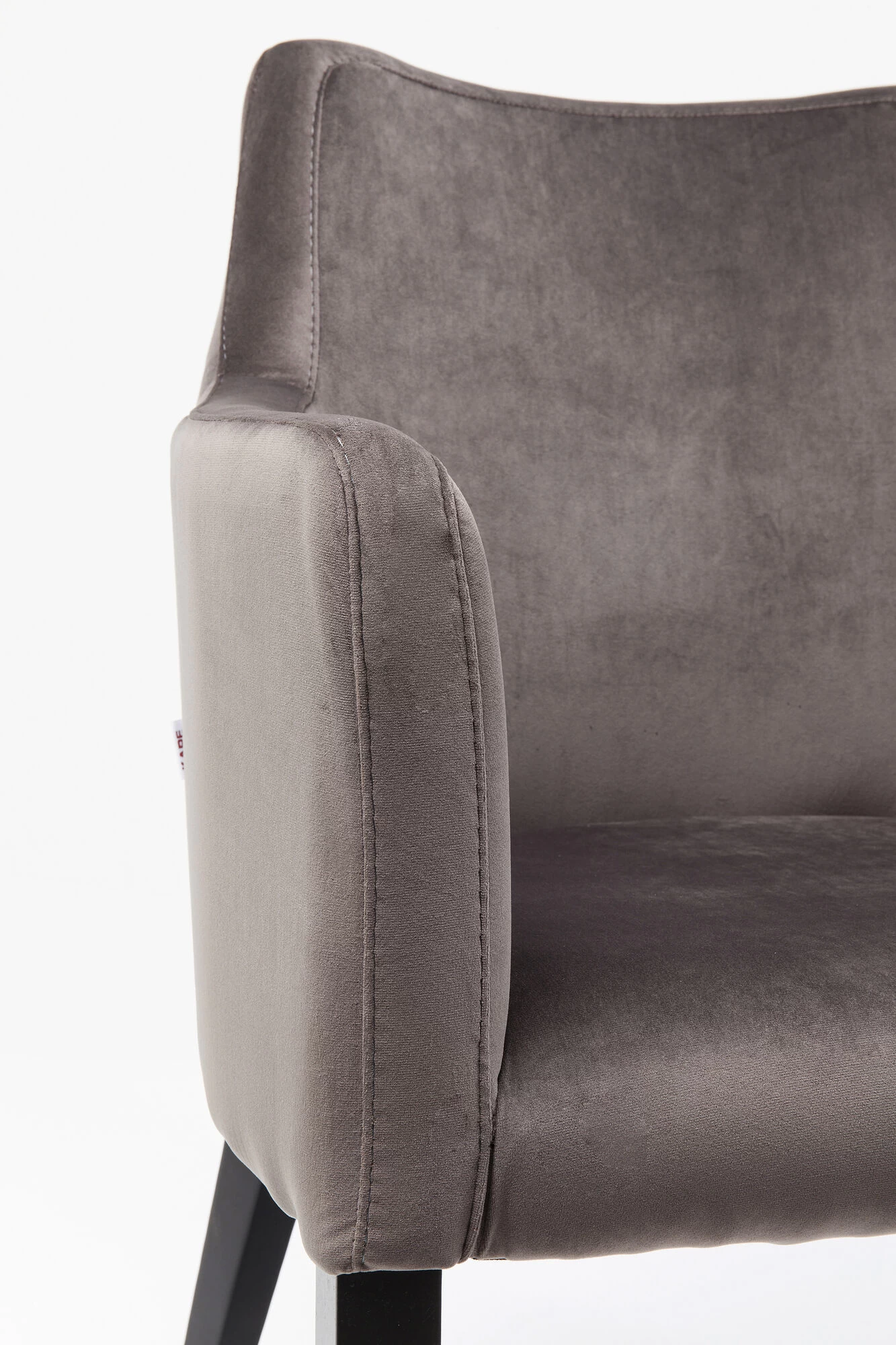 - Polsterstuhl-Klassiker, der durch seine moderne Form den Samt-Look und das neutrale Grau bei jedem Wohnstil punktet