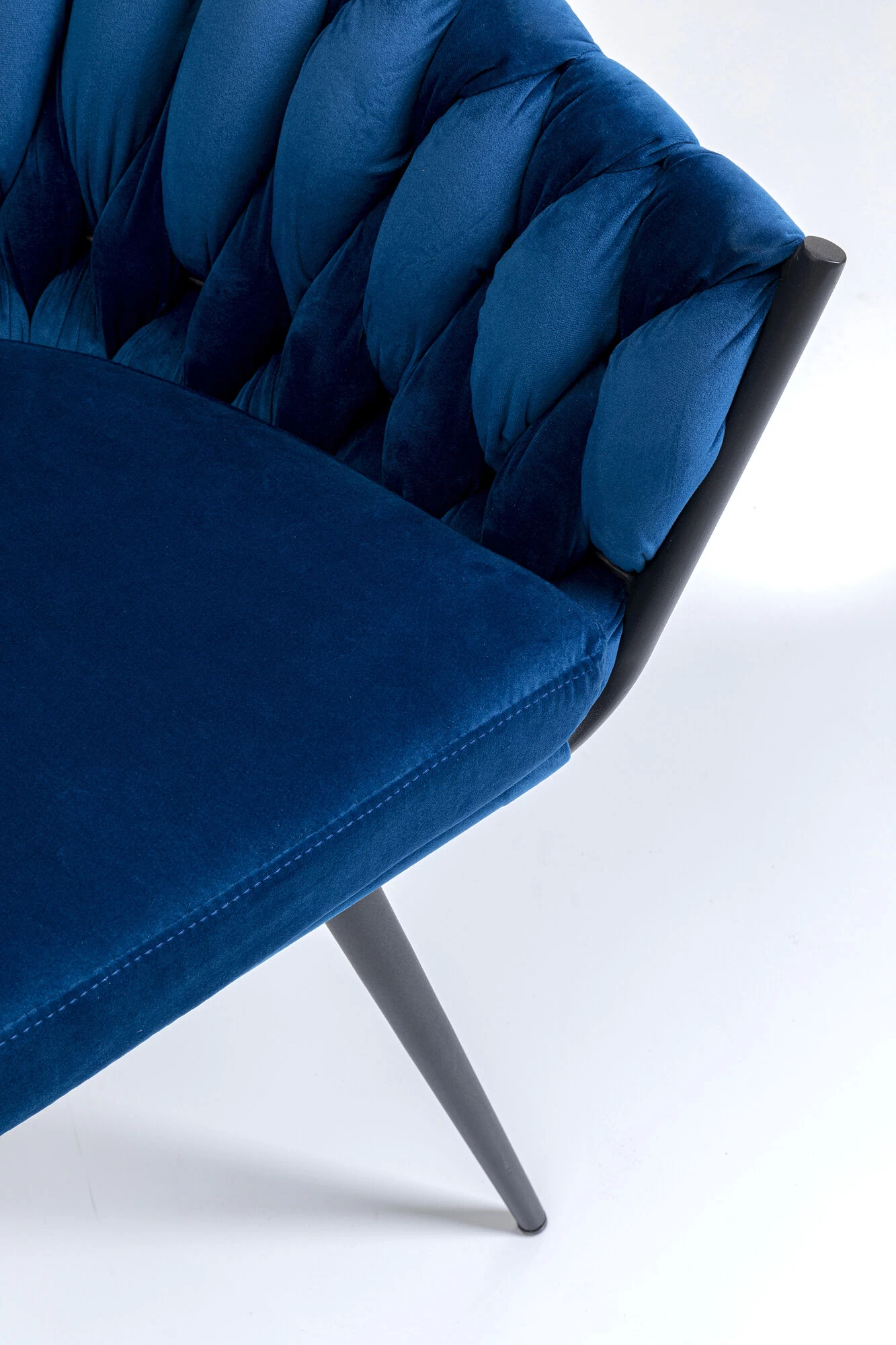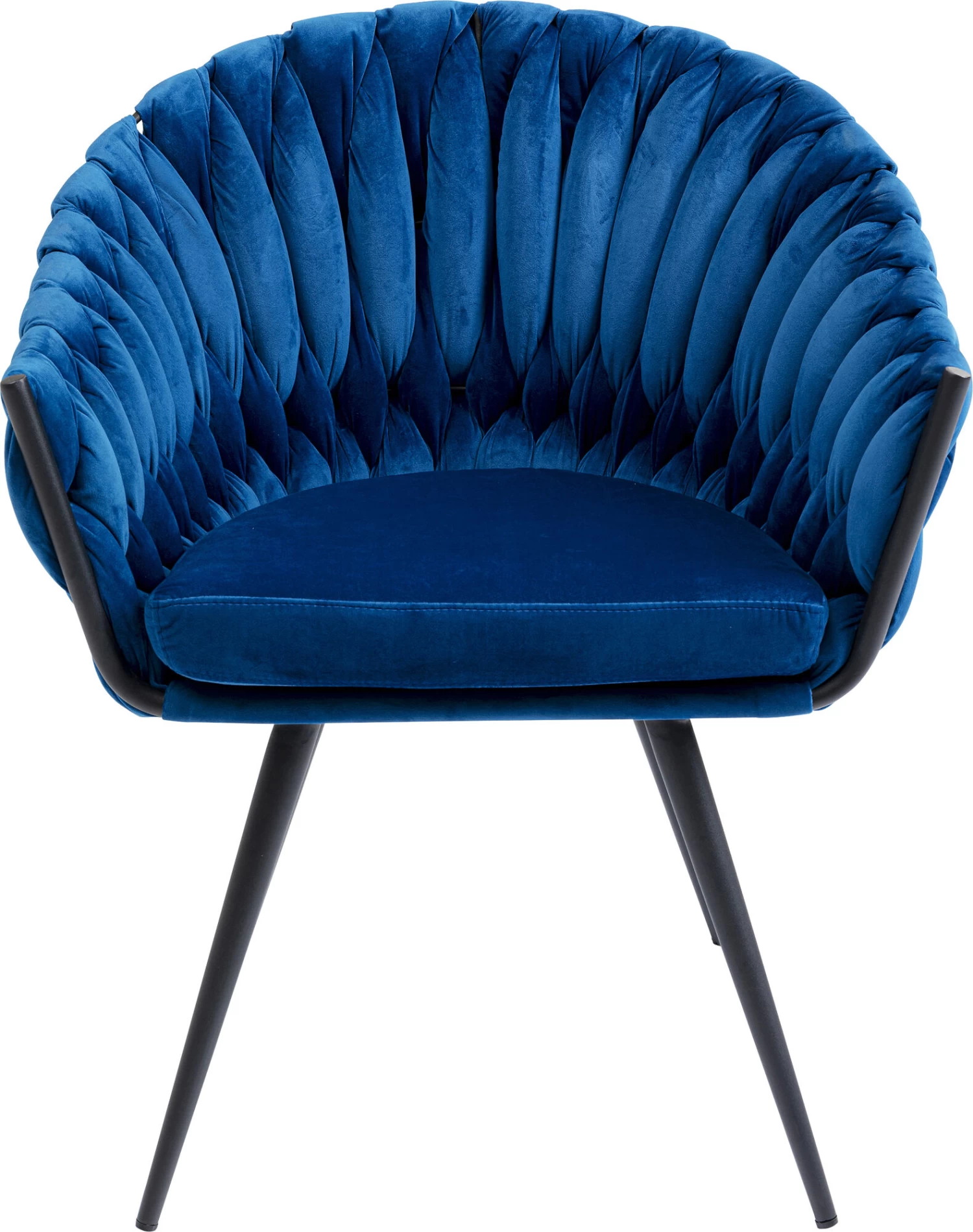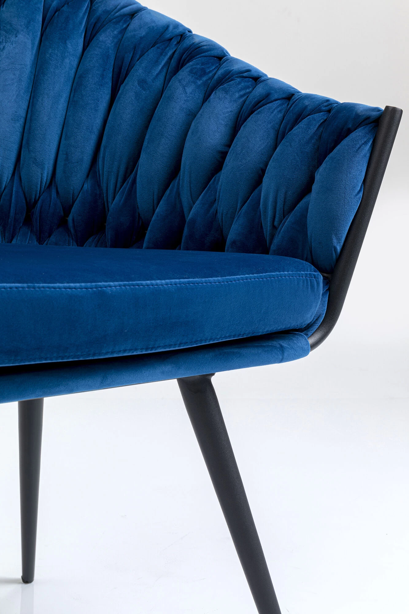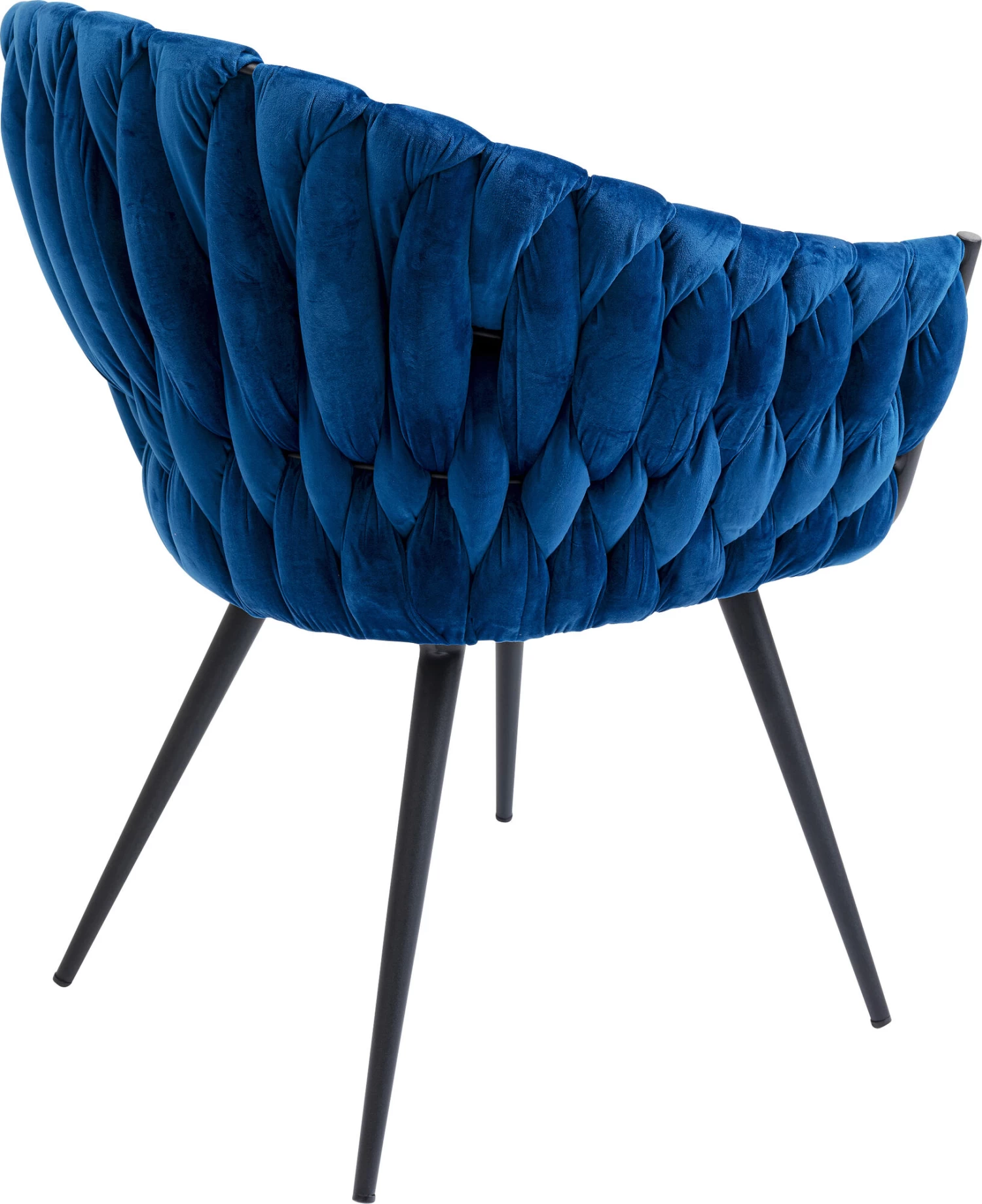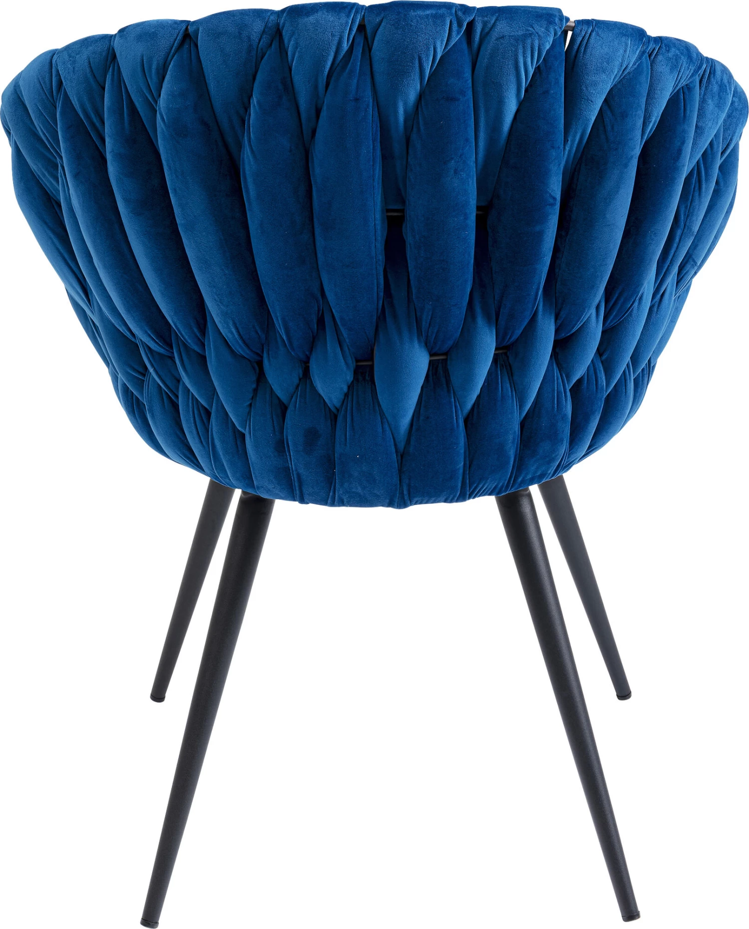 - Ein Hingucker in Blau und Samt: gemütlicher Armlehnstuhl, extra stylisch mit geflochtener Rückenlehne