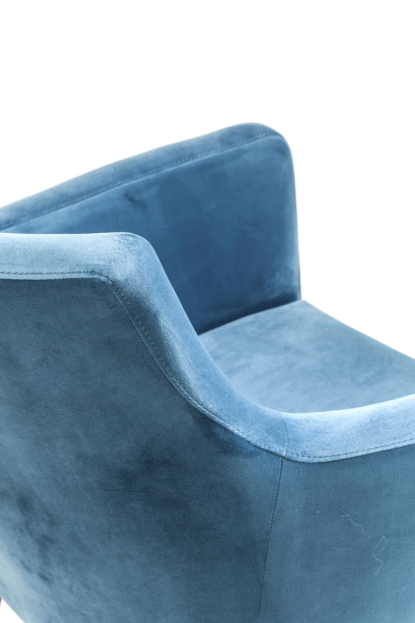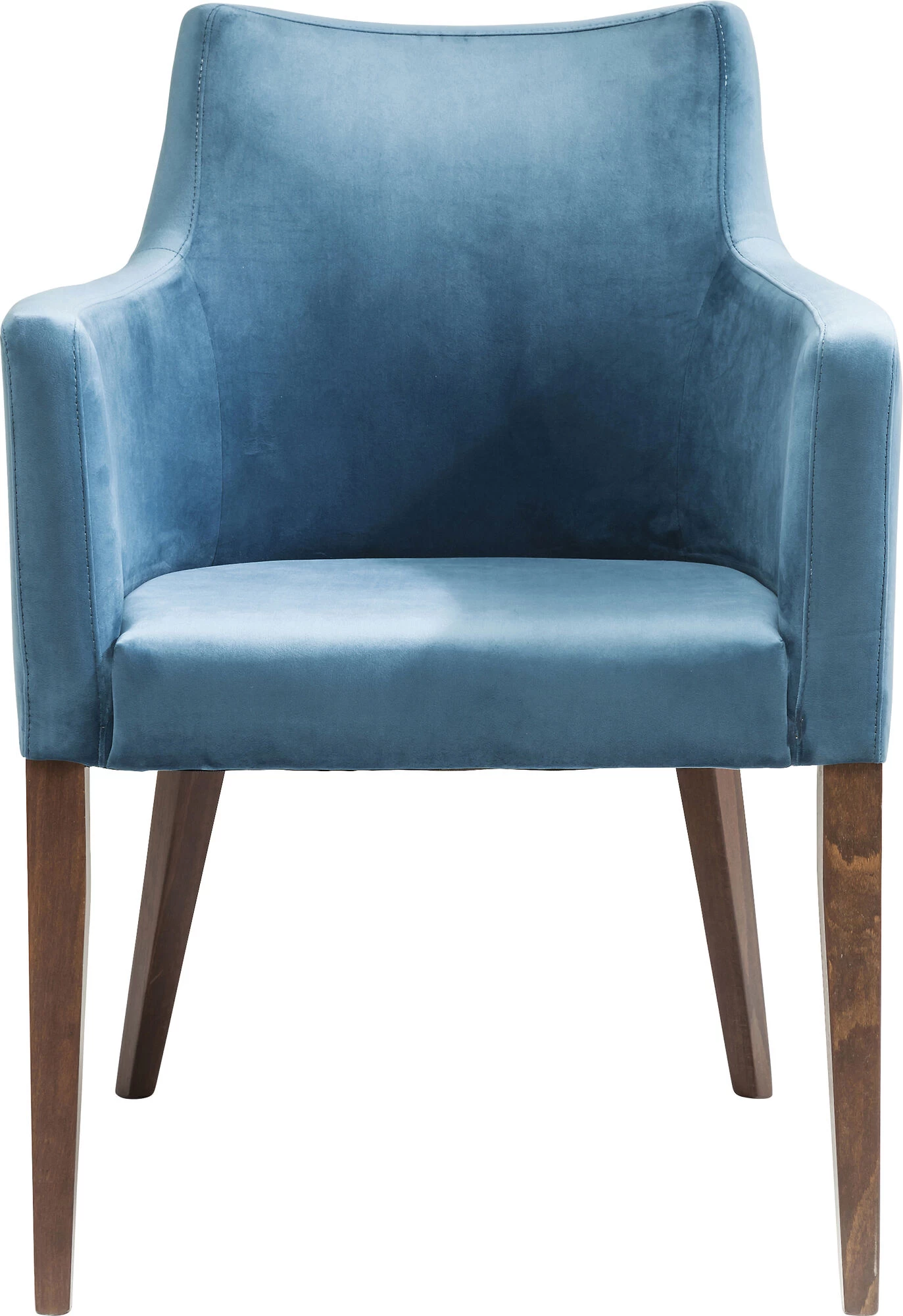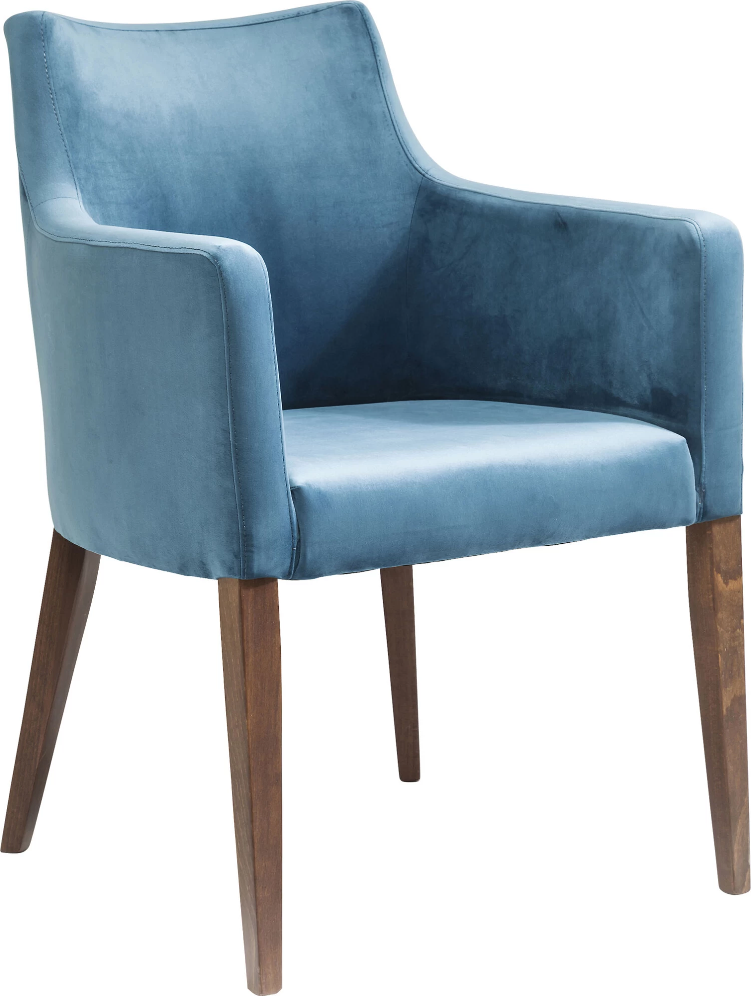 - Blauer, komfortabler Polsterstuhl in Samt-Optik mit Armlehnen sowie braun lackierten Beinen aus massivem Buchenholz
