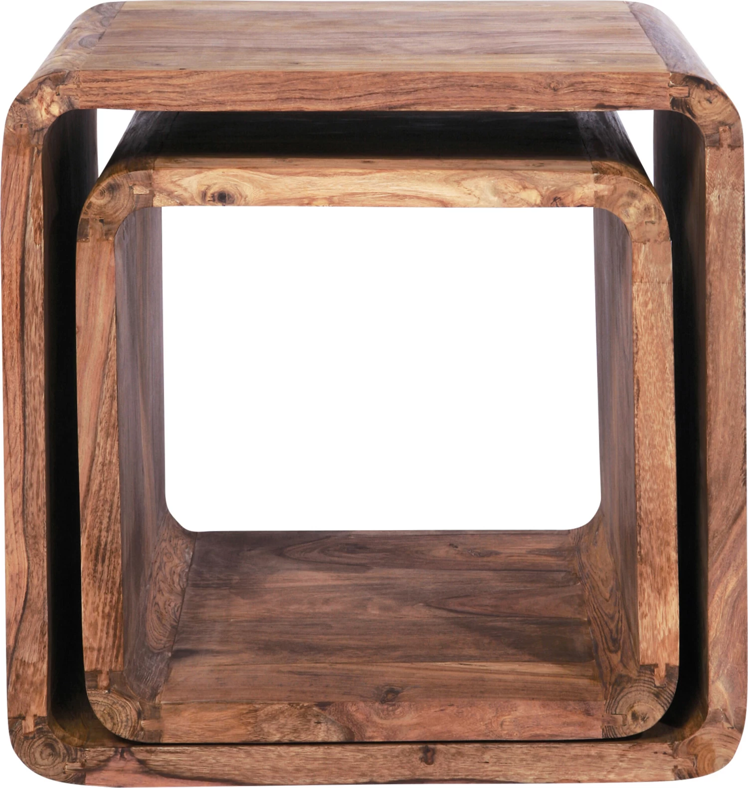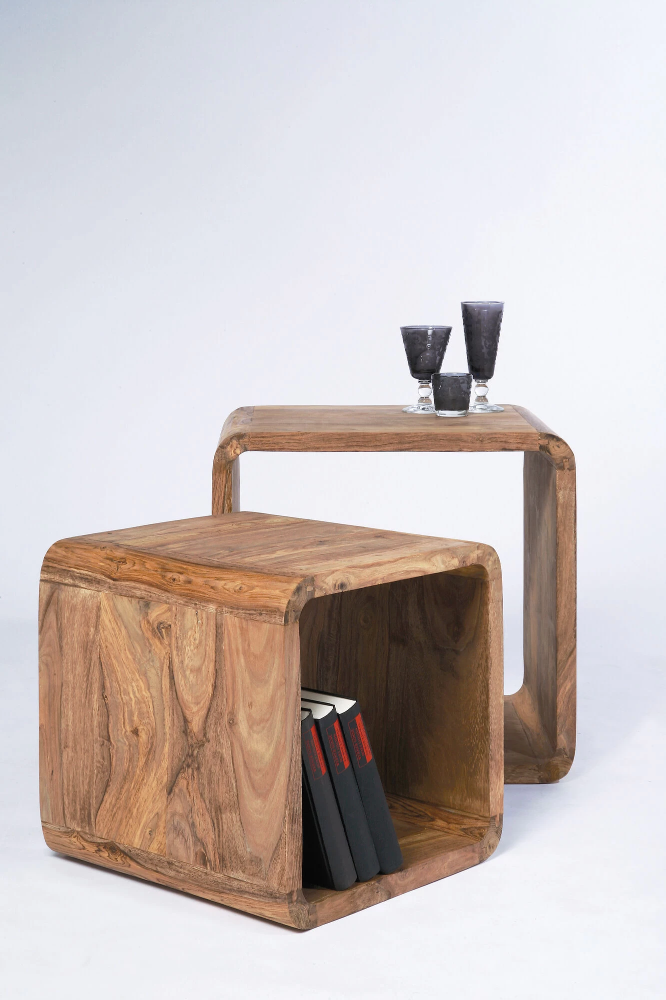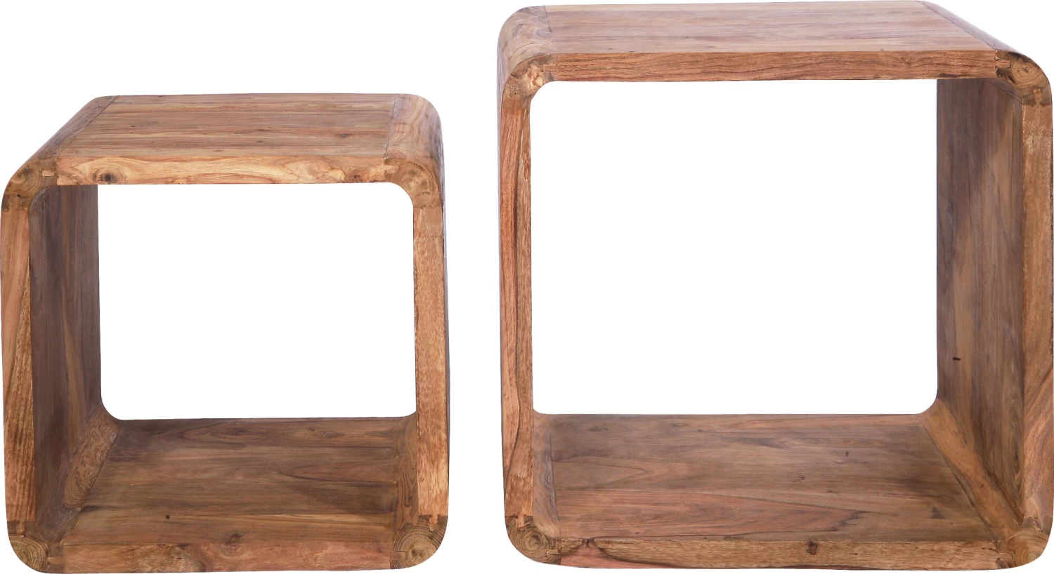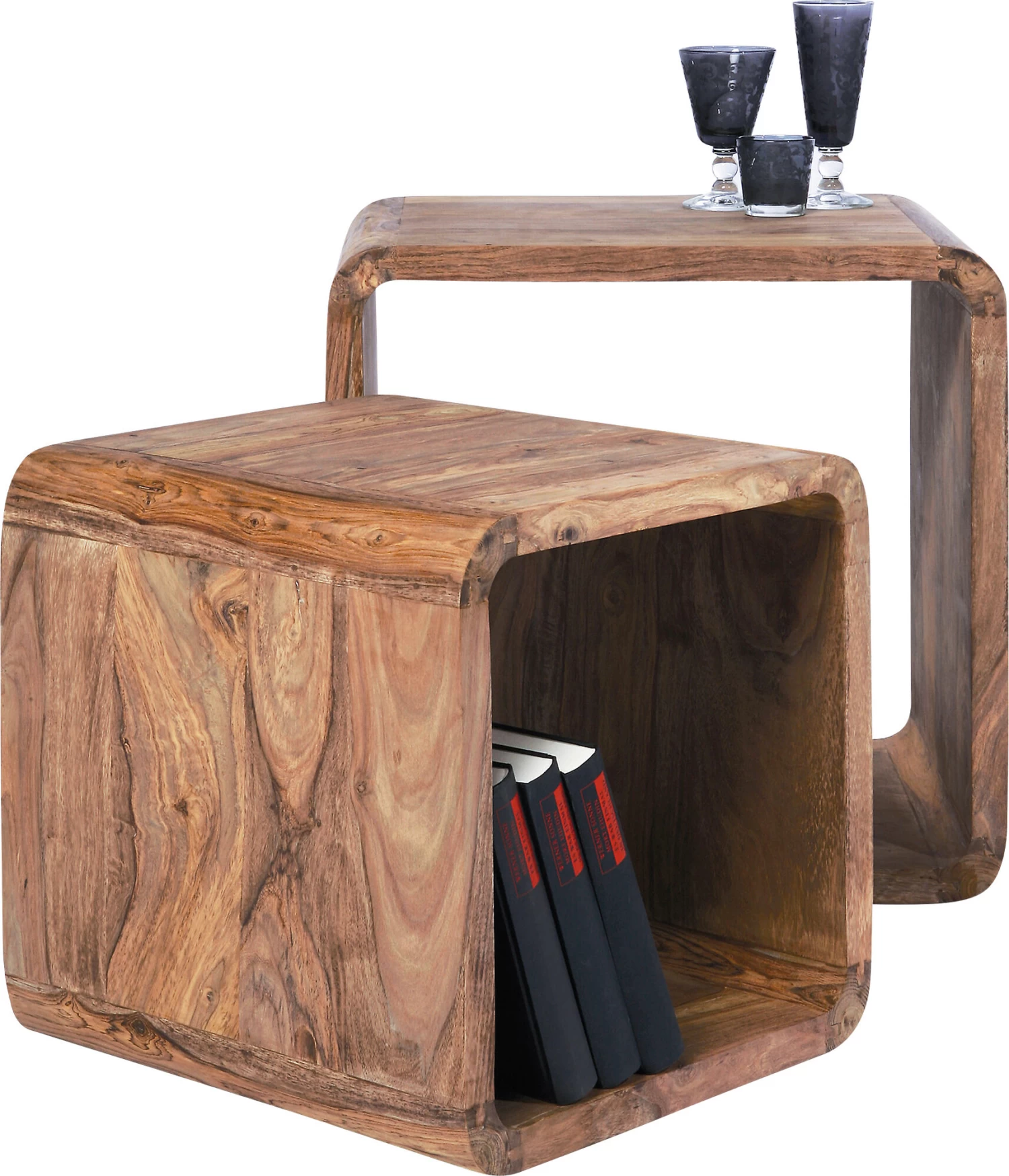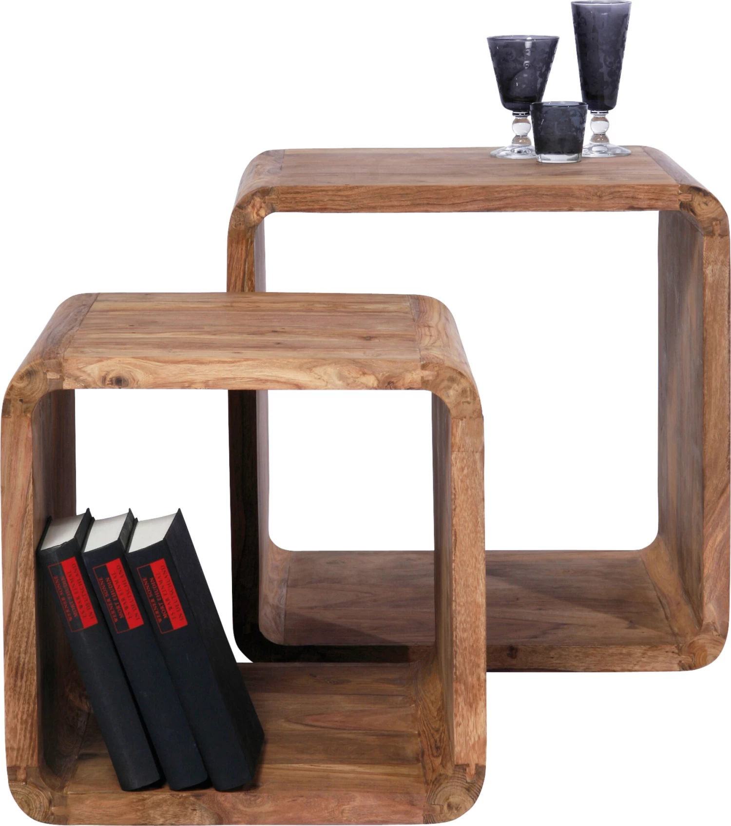 - Beistelltische und Regal in einem: Die zwei Regalwürfel sind Unikate aus Massivholz
