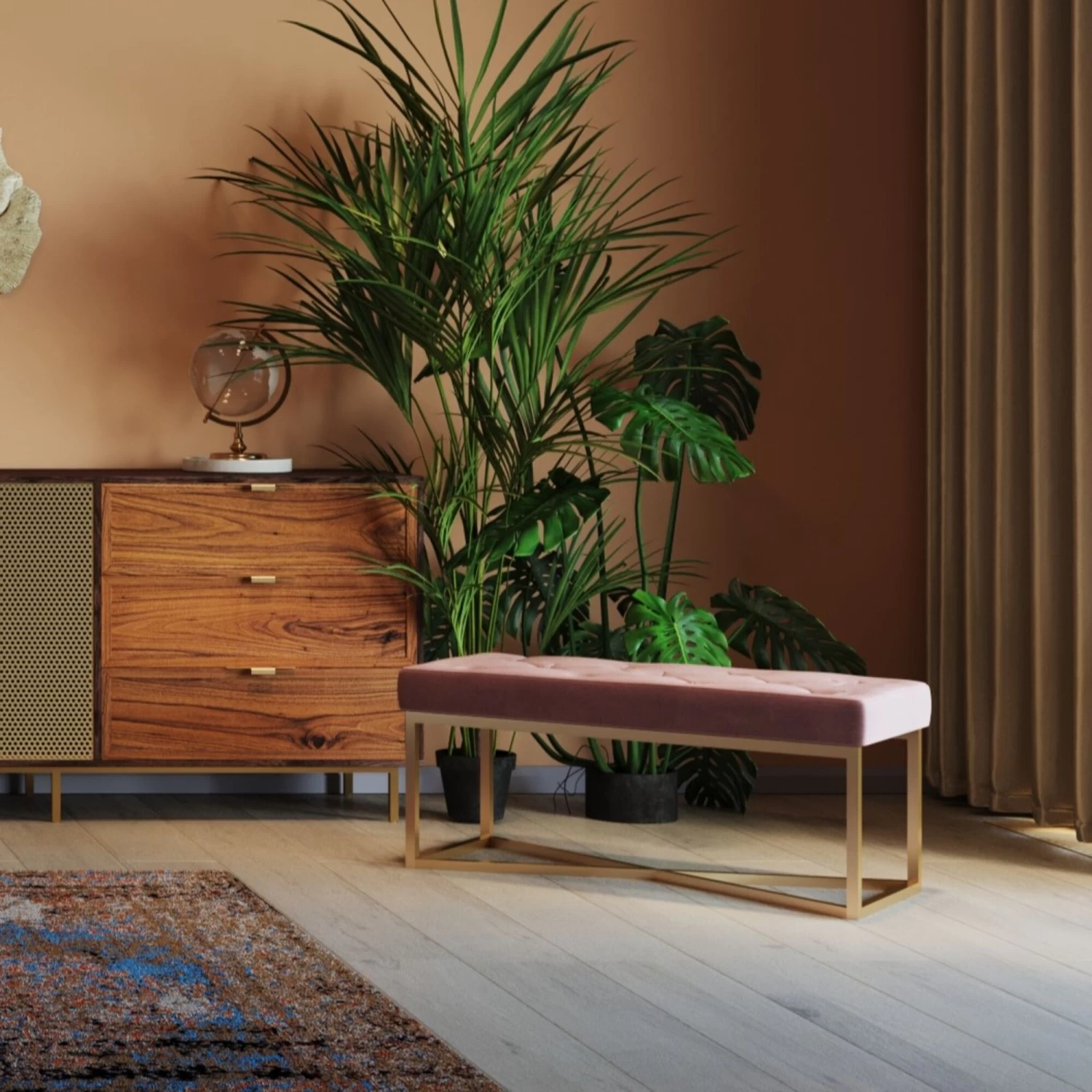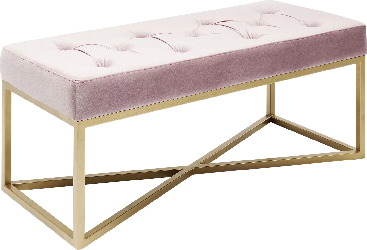 - Ein Stück mit Allure in der Traumkombi Messing und Rosa. Die klare Silhouette der Polsterbank fügt sich mühelos in jedes Interior
