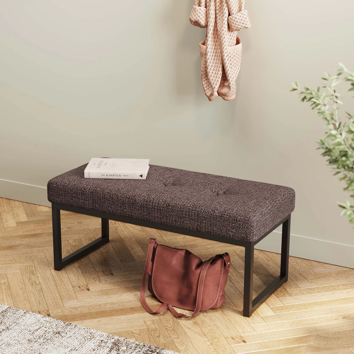 - Braune Sitzbank mit schwarzem Gestell aus Metall