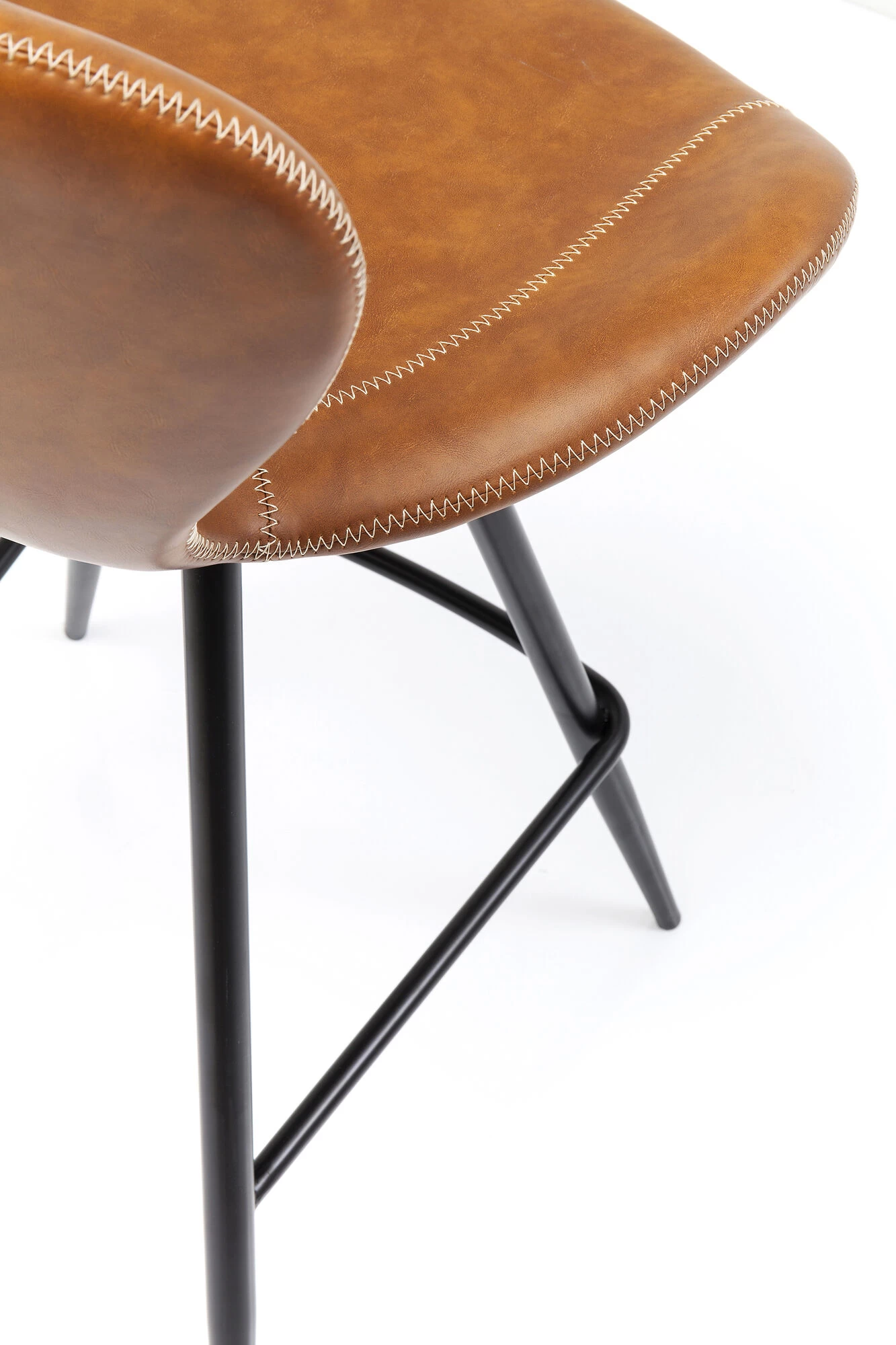 - Dekorative, helle Zick-Zack-Nähte unterstreichen die Vintage-Lederoptik