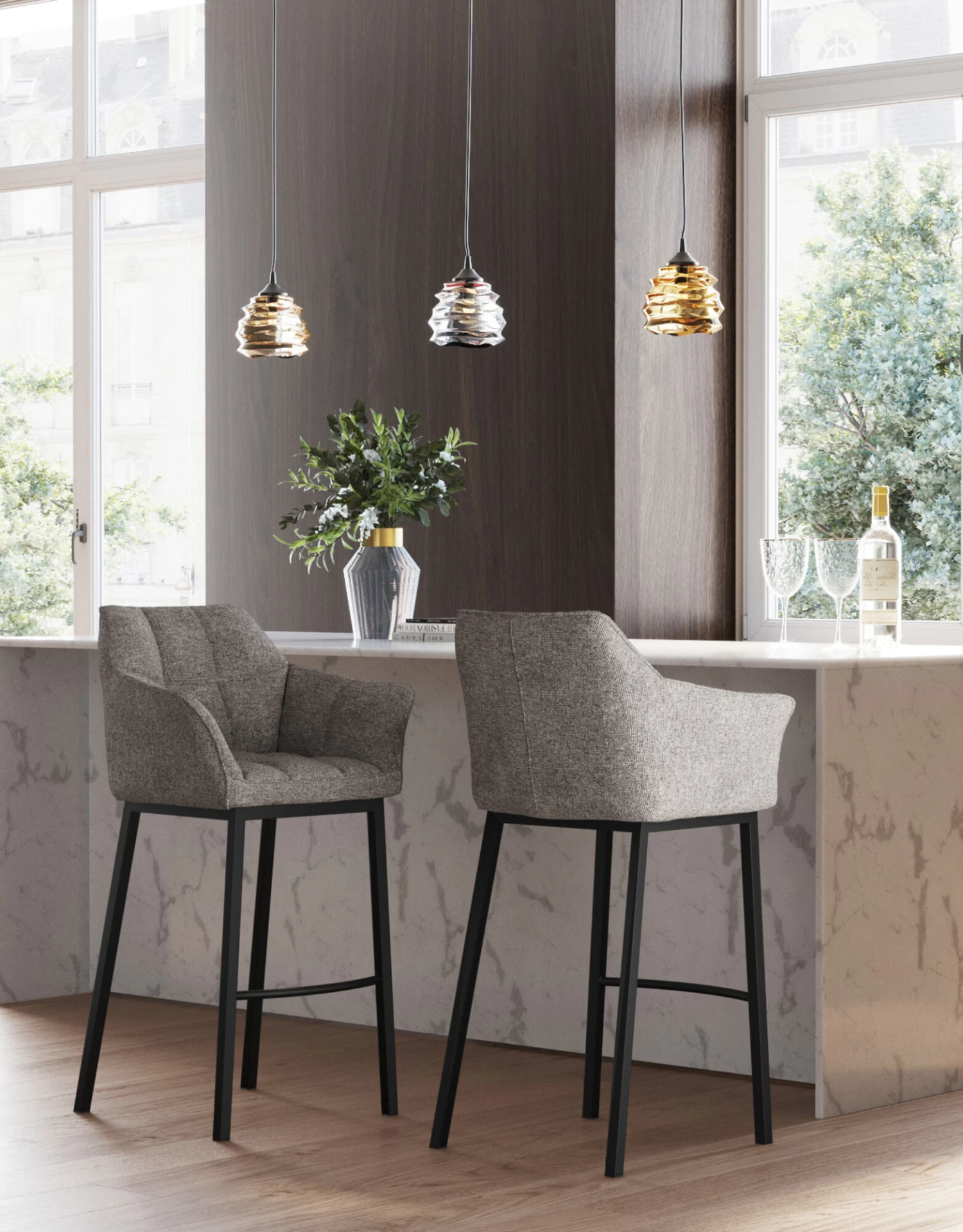 - Barhocker mit Armlehnen in Grau mit Arm- und Rückenlehne sowie komfortabler Fußstütze
