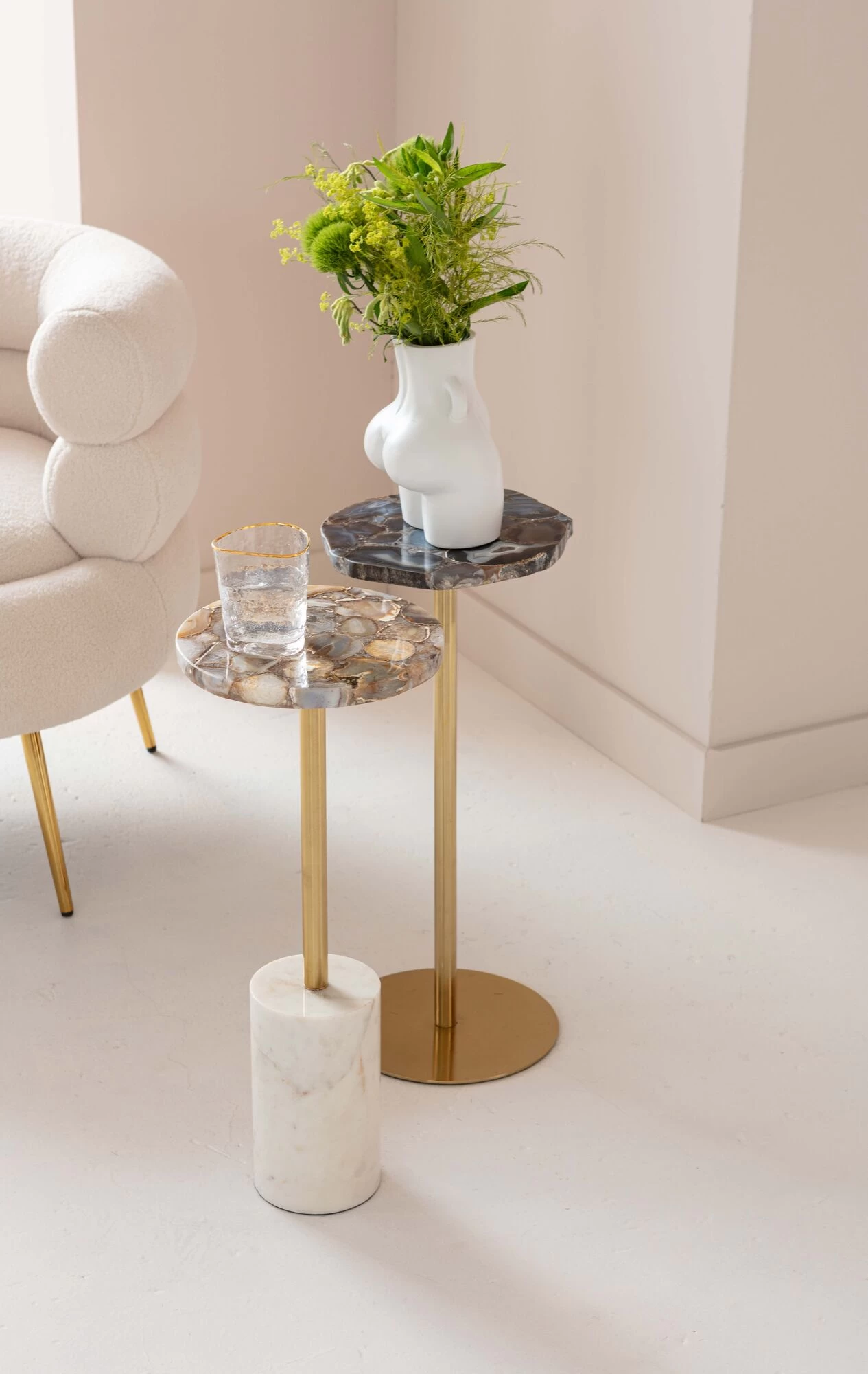 - Zur luxuriösen Ausnahmeerscheinung macht diesen kleinen Tisch die Platte aus echtem Achat-Stein
