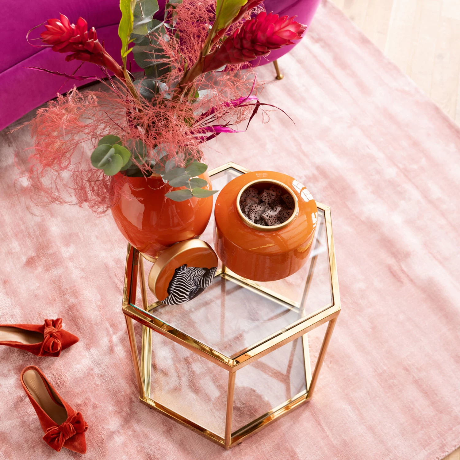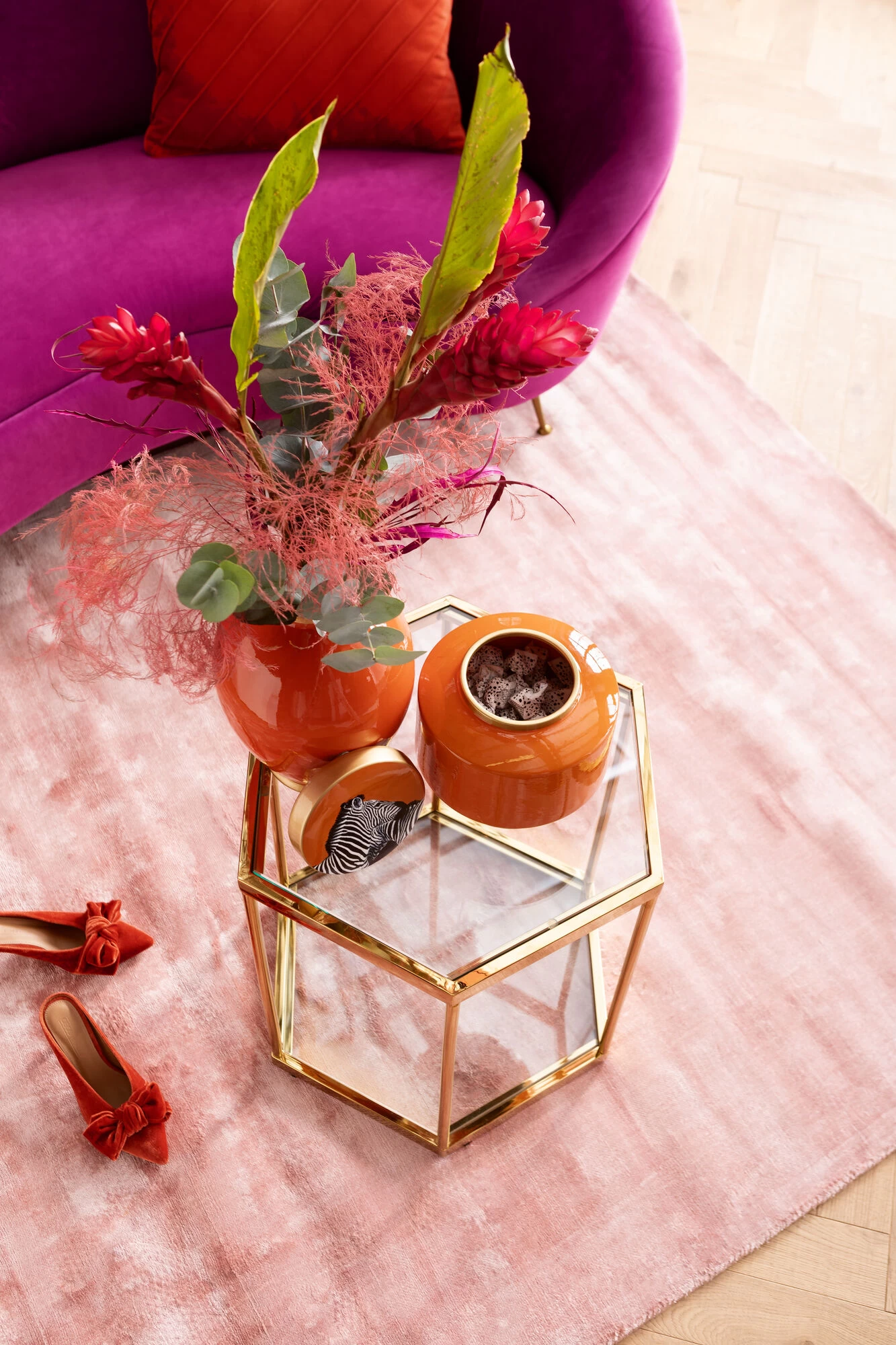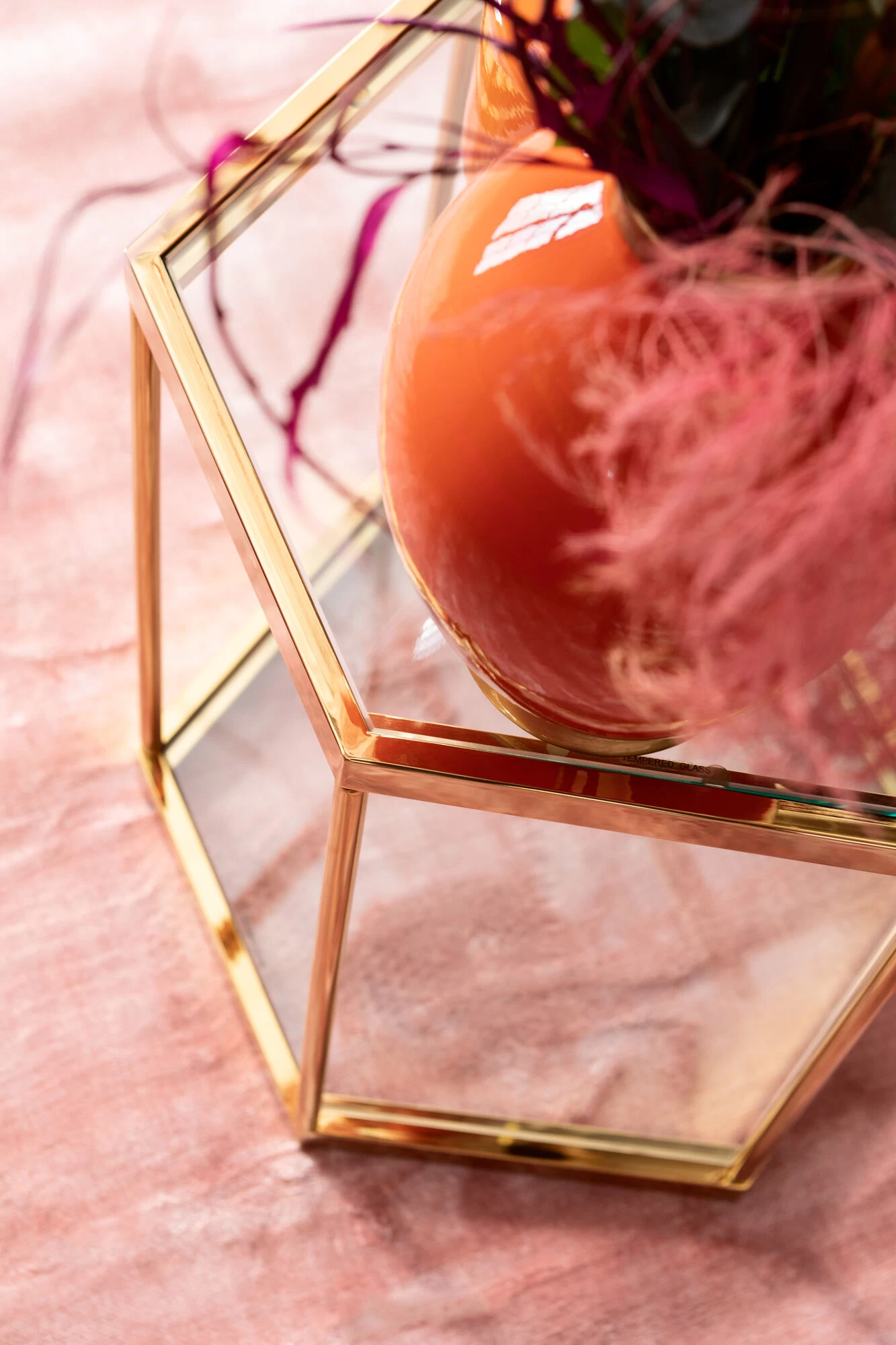 - Der Glastisch passt wunderschön zu Samt-Sofas als Beistelltisch mit einer Tischleuchte