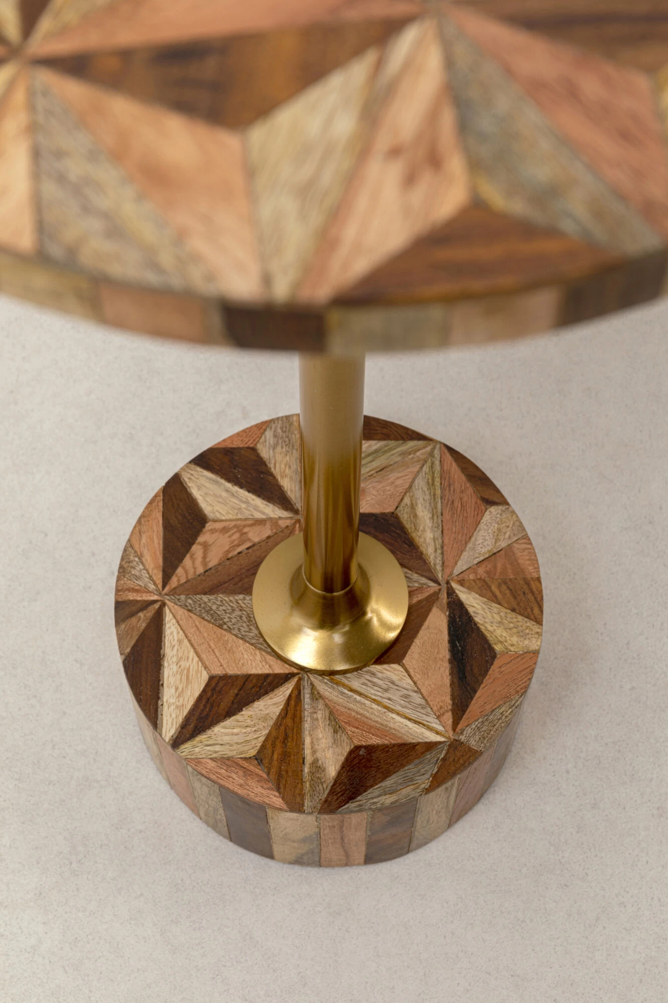 - Handgearbeitete Muster auf Sockel und Platte in Braun-Tönen machen jedes Tischchen zum Unikat
