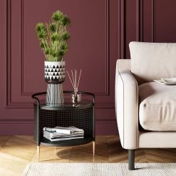 - Mit 45cm Durchmesser und zwei Ablageflächen ein schicker und funktionaler Beistelltisch neben Sofa und Sessel