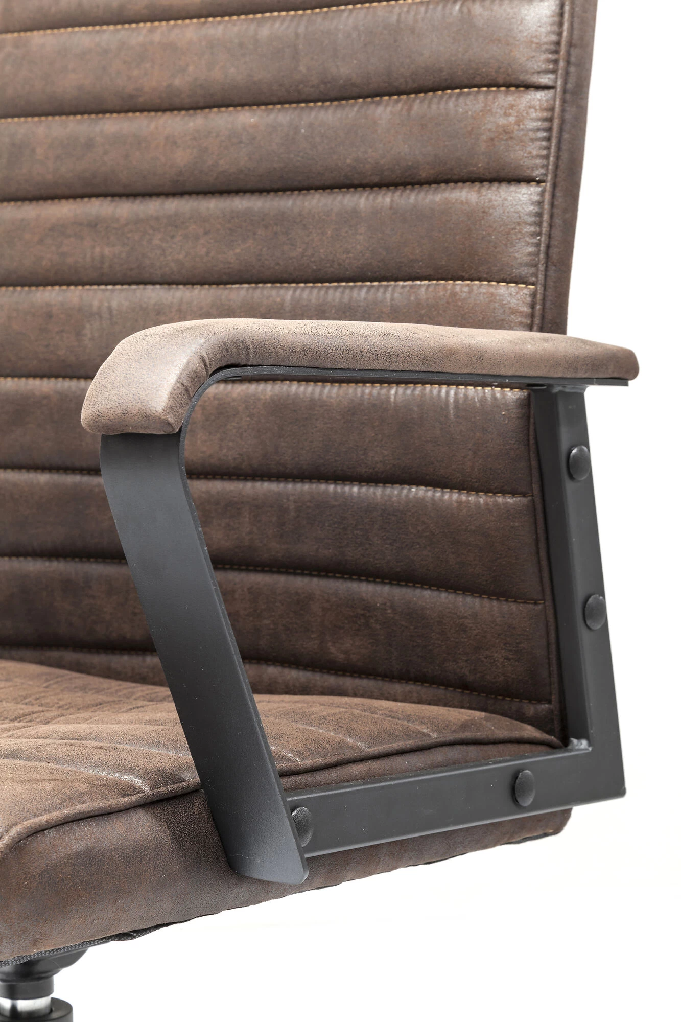 - Der Drehstuhl in Braun ist stufenlos per Gasdruckfeder höhenverstellbar, 360 Grad drehbar und verfügt über eine individuell einstellbare Wippfunktion
