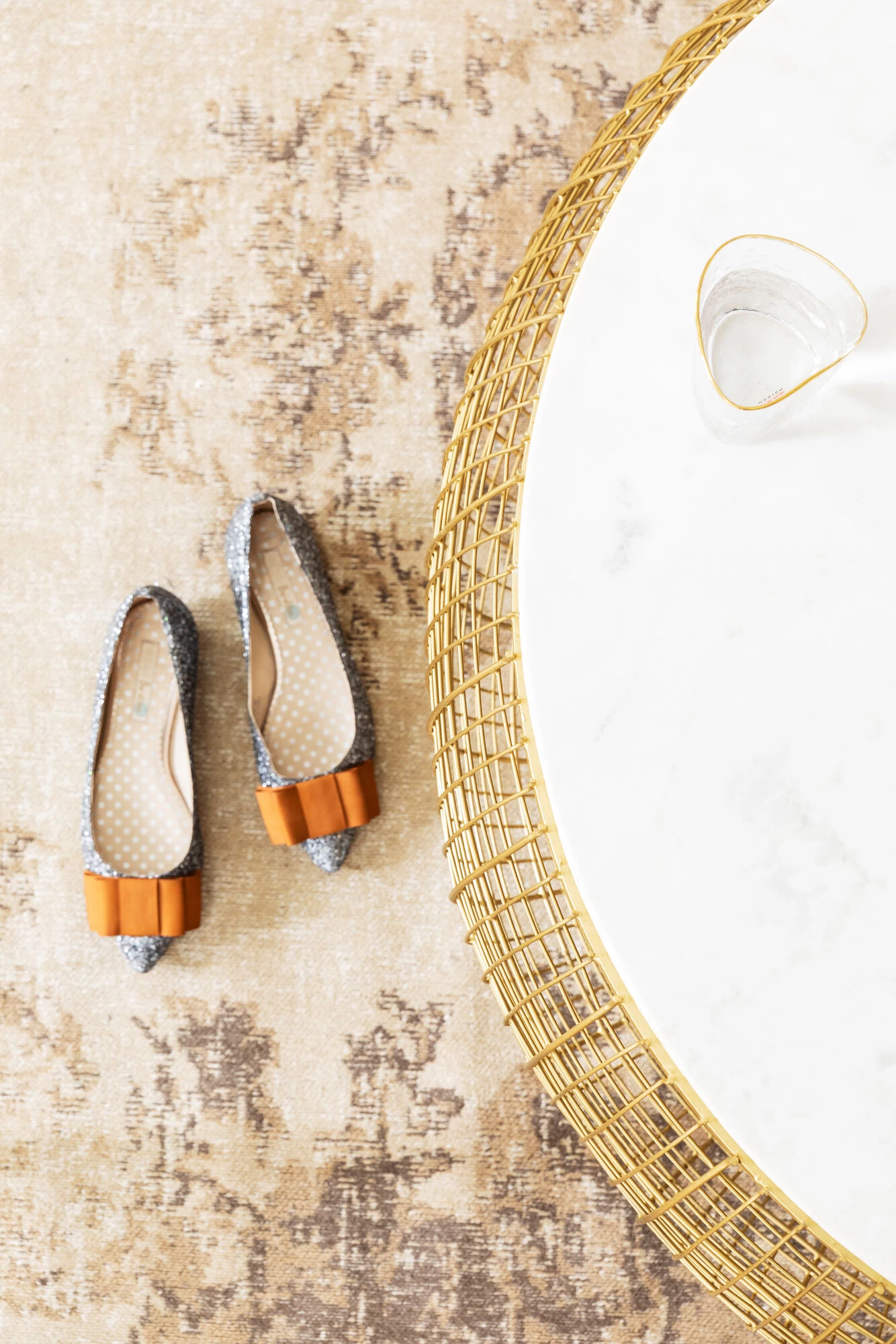 - Runder Couch- und Beistelltisch im eleganten Retro-Stil – ein Keypiece in Gold und hellem Marmor