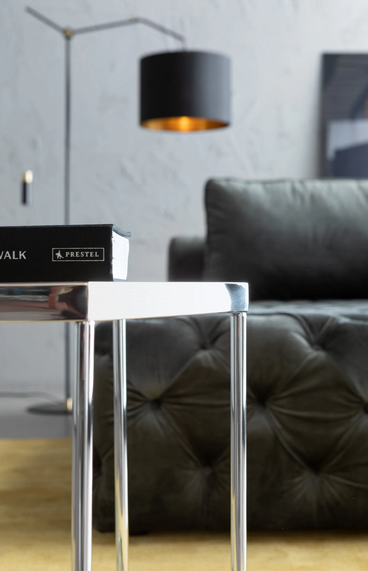 - Der Glastisch passt auch zu Samt-Sofas als Beistelltisch mit einer Tischleuchte