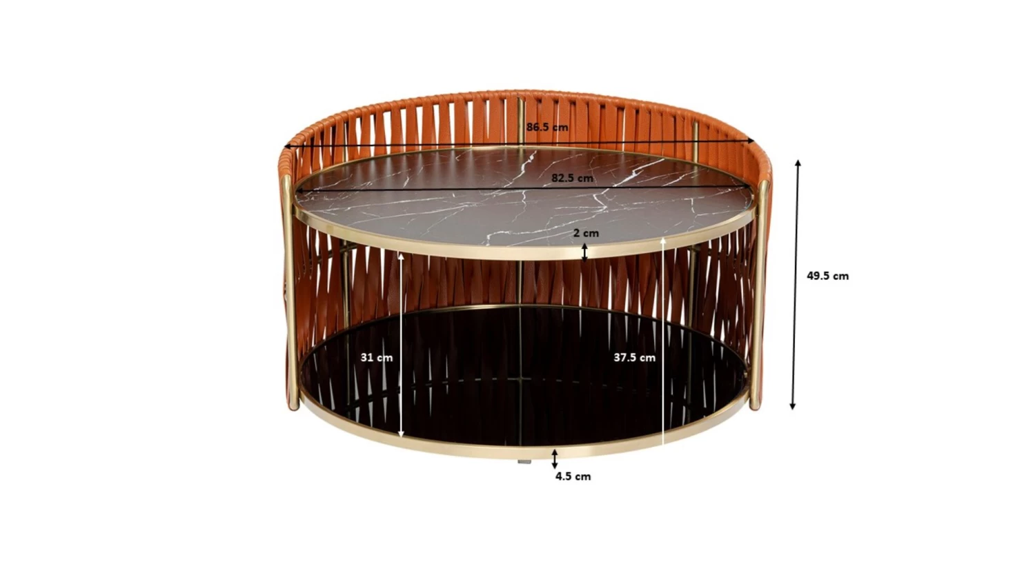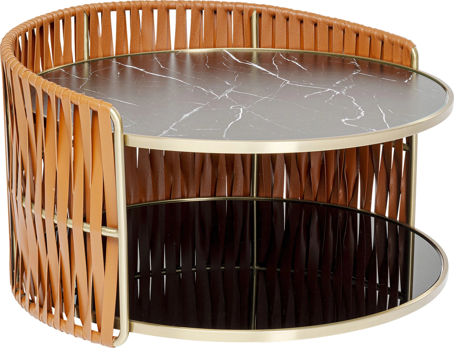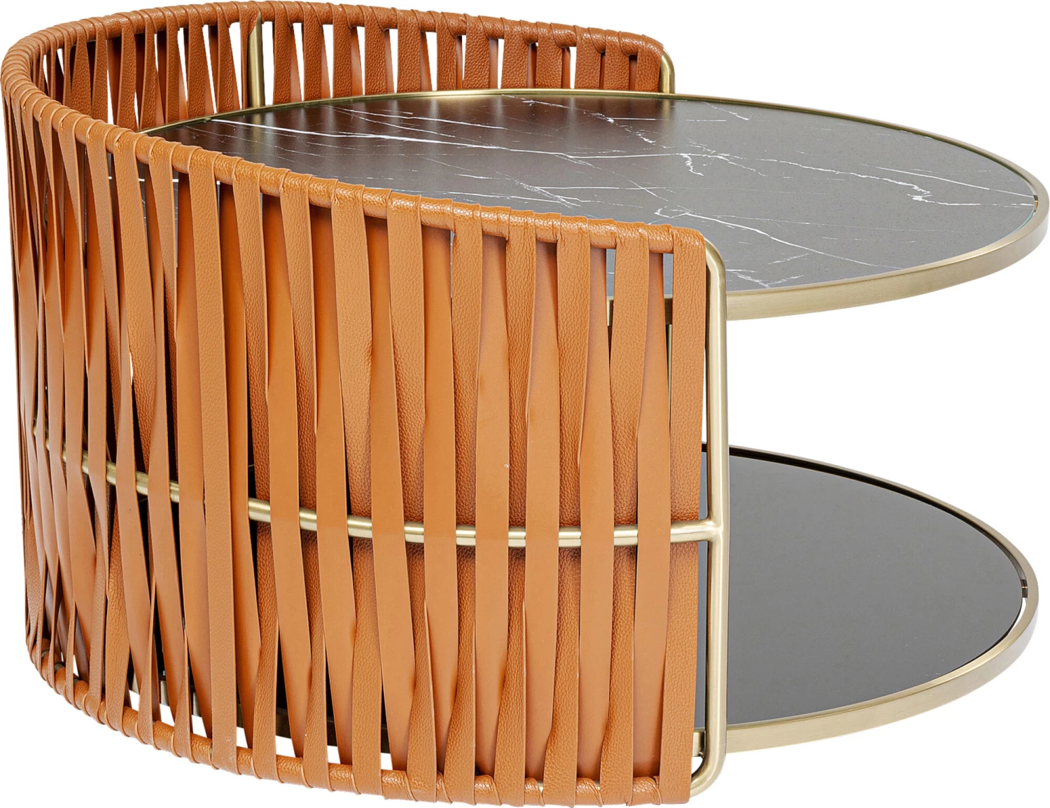- Messingglanz, Marmoroptik und die braunen Bänder in Lederoptik geben diesem Beistelltisch luxuriösen, einzigartigen Charakter