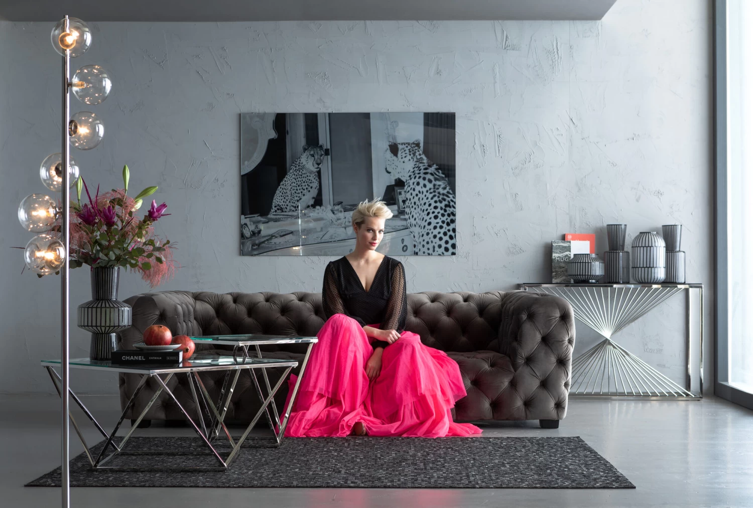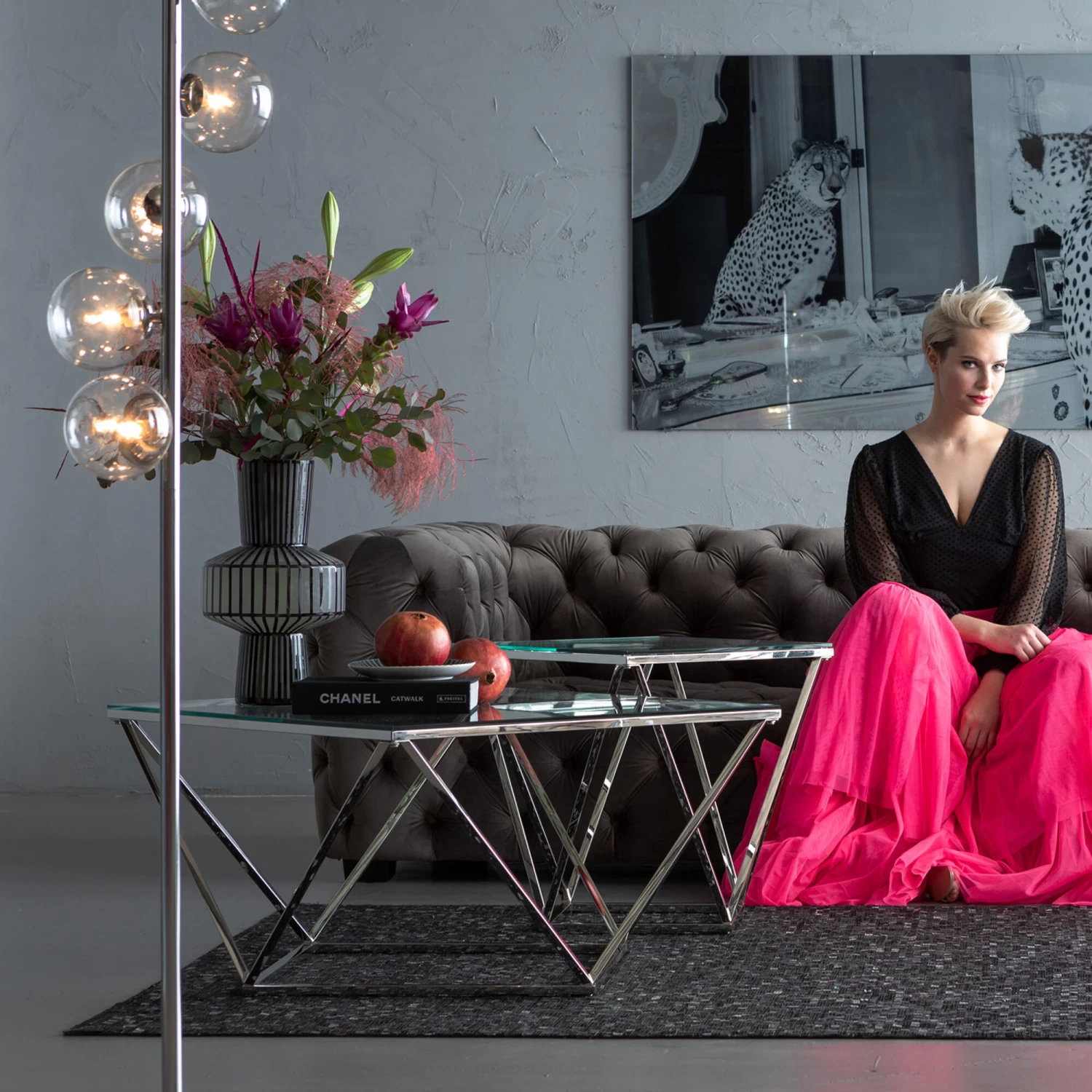 - Ein klarer, aufgeräumter Look entsteht, wenn Sie den Glas-Couchtisch als Paar links und rechts neben dem Polstersofa platzieren