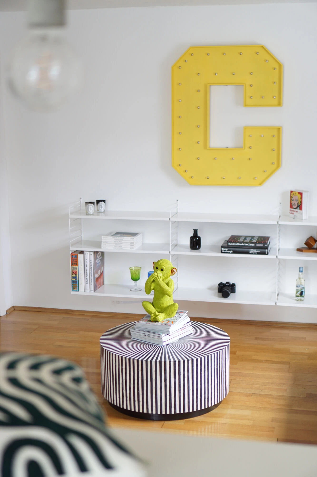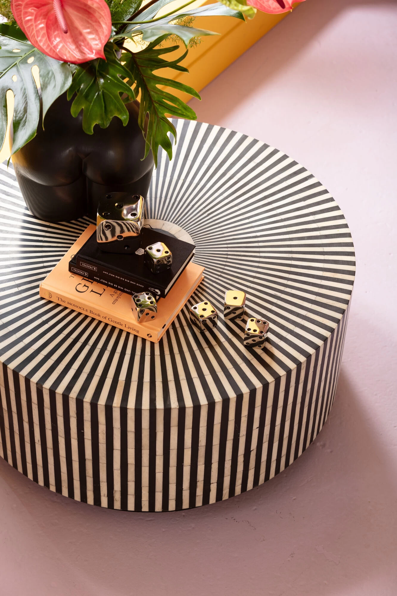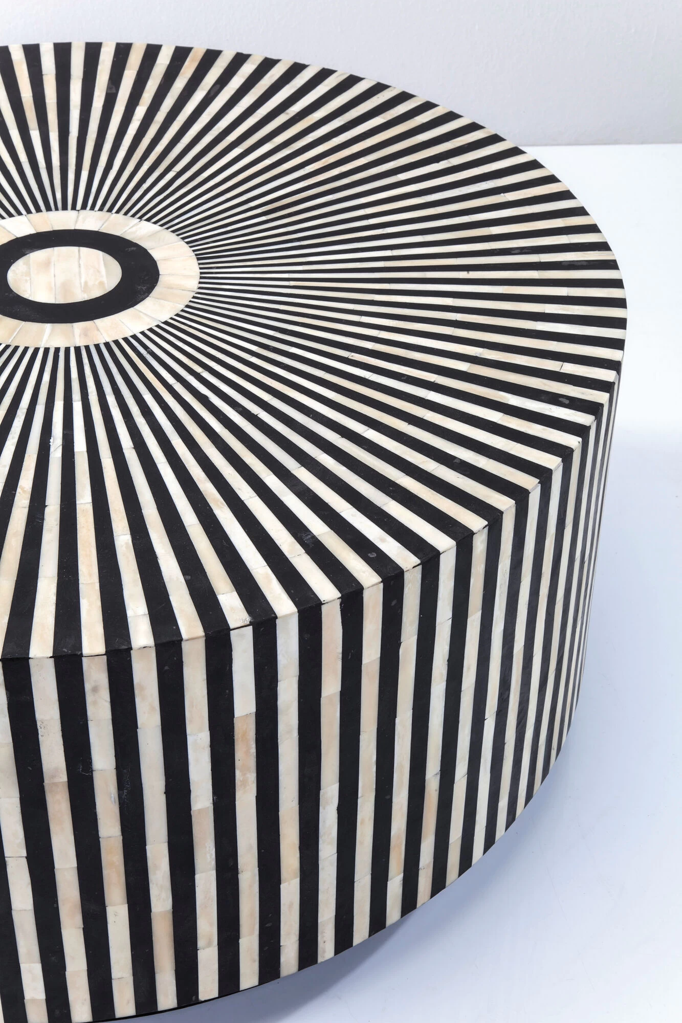- Runder Couchtisch in Schwarz und Weiß, 35 x 75 x 75 Zentimeter (H/B/T)