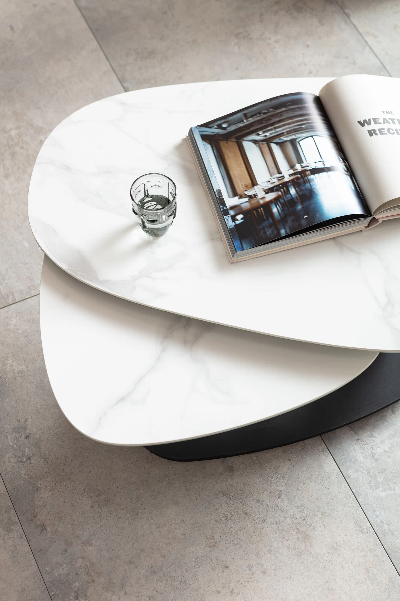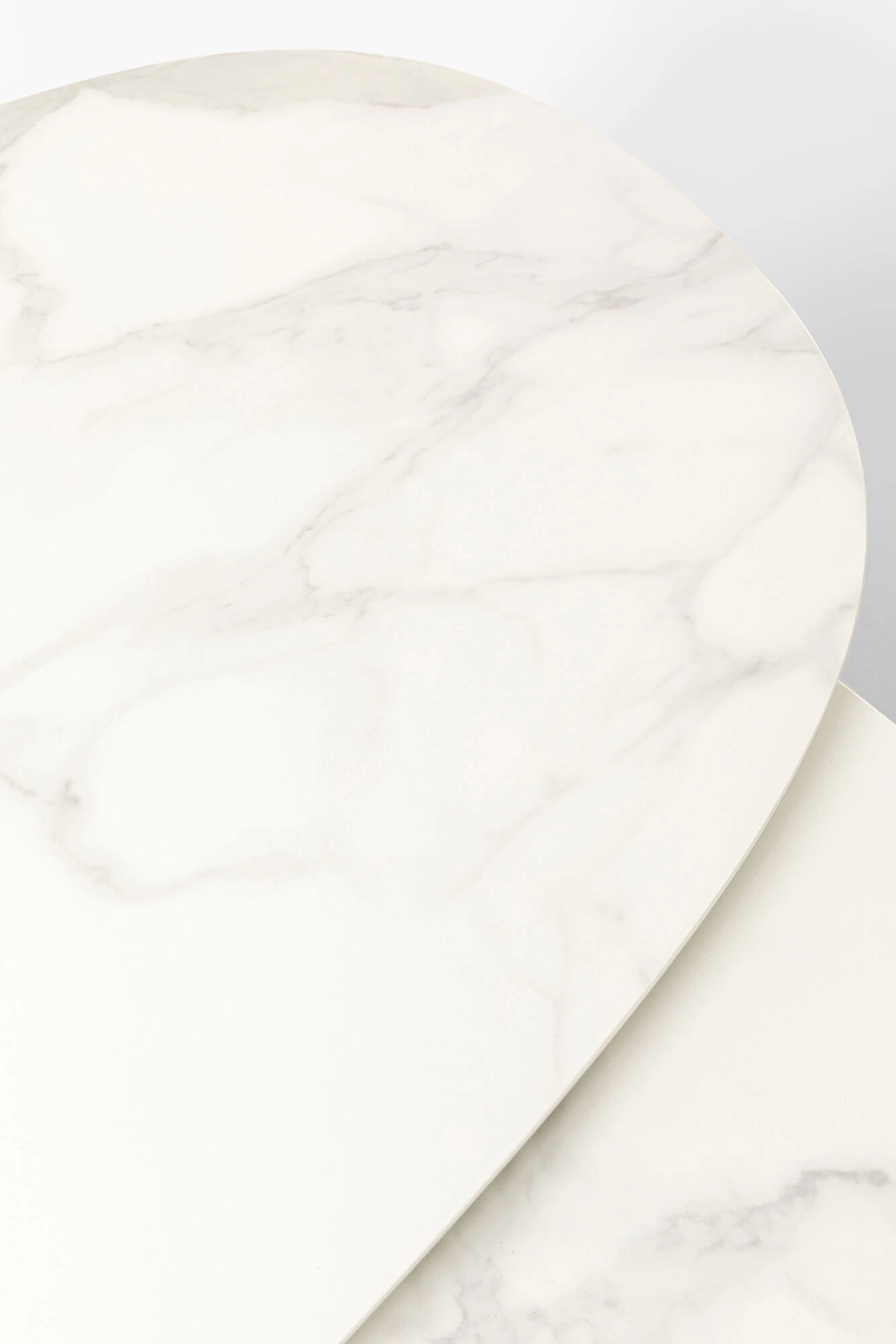 - Hell marmorierte, edle Tischplatten aus widerstandsfähiger und pflegeleichter Keramik