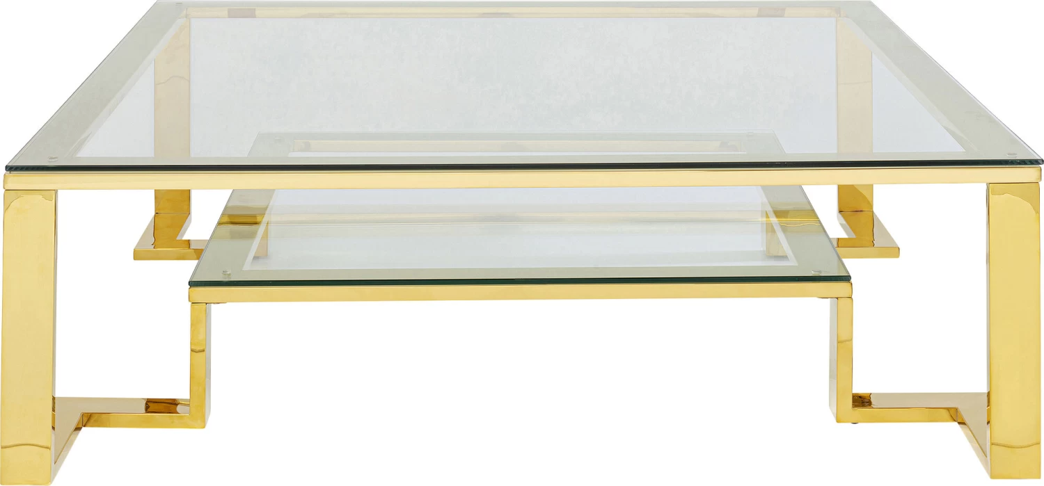 - Edel: Couchtisch aus Glas mit goldfarbenem Gestell