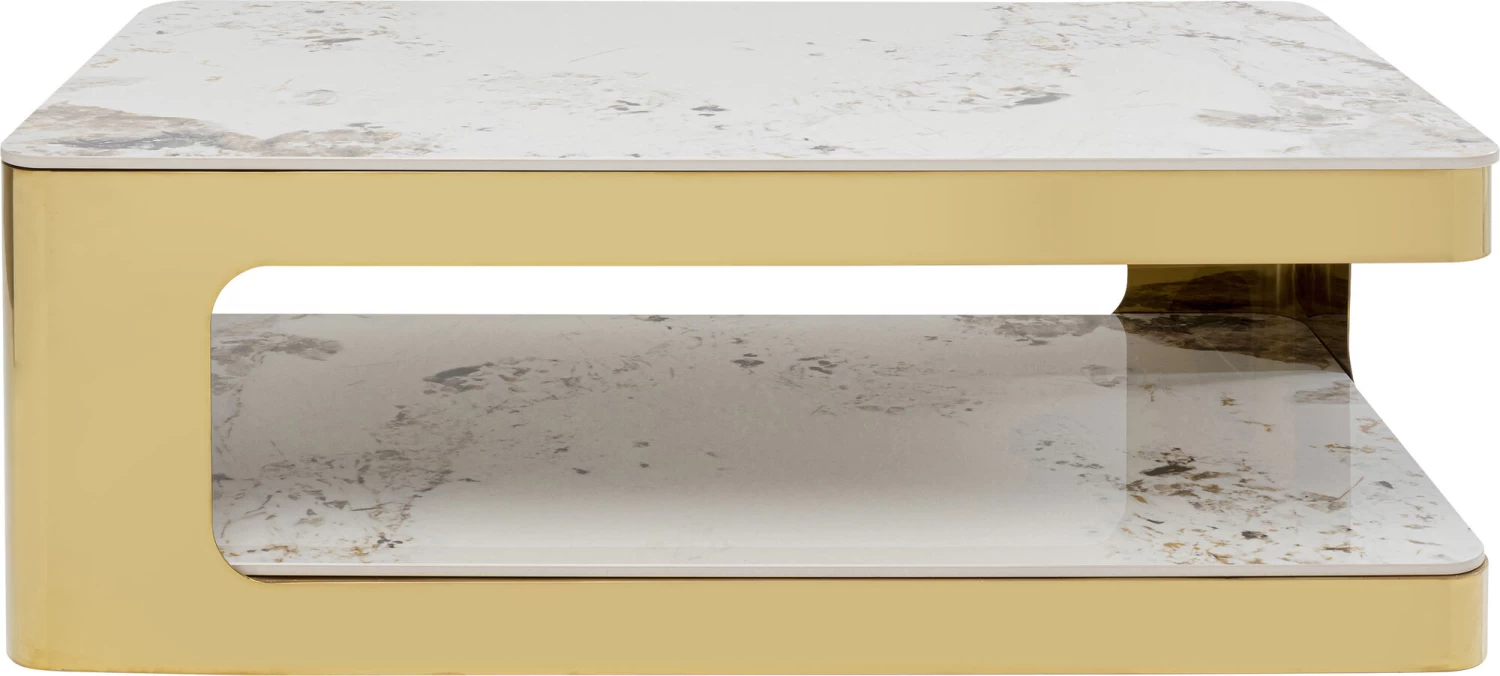 - Naturweiße, marmorierte Keramik verleiht den Platten des Wohnzimmertisches eine edle Note