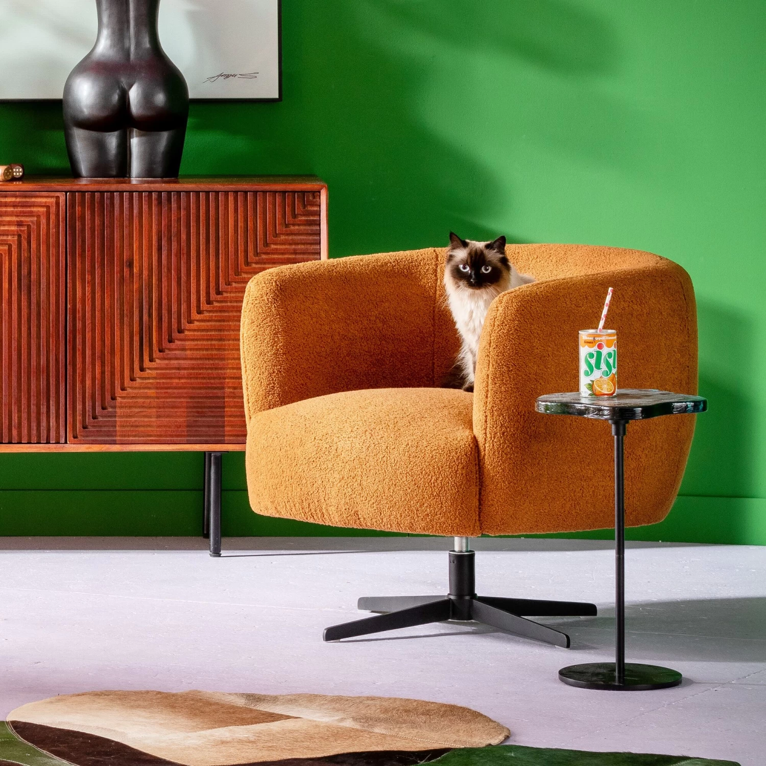 - Der flauschige Teddybezug macht Fuzzy zum kuscheligen Cocktailsessel im Wohnzimmer