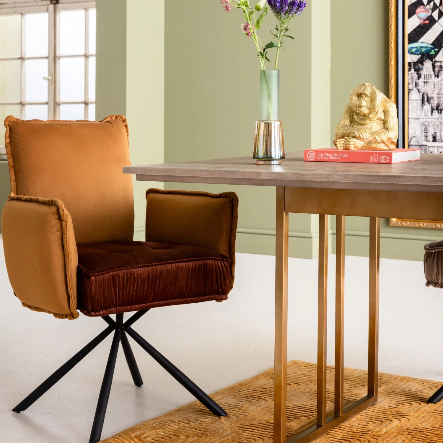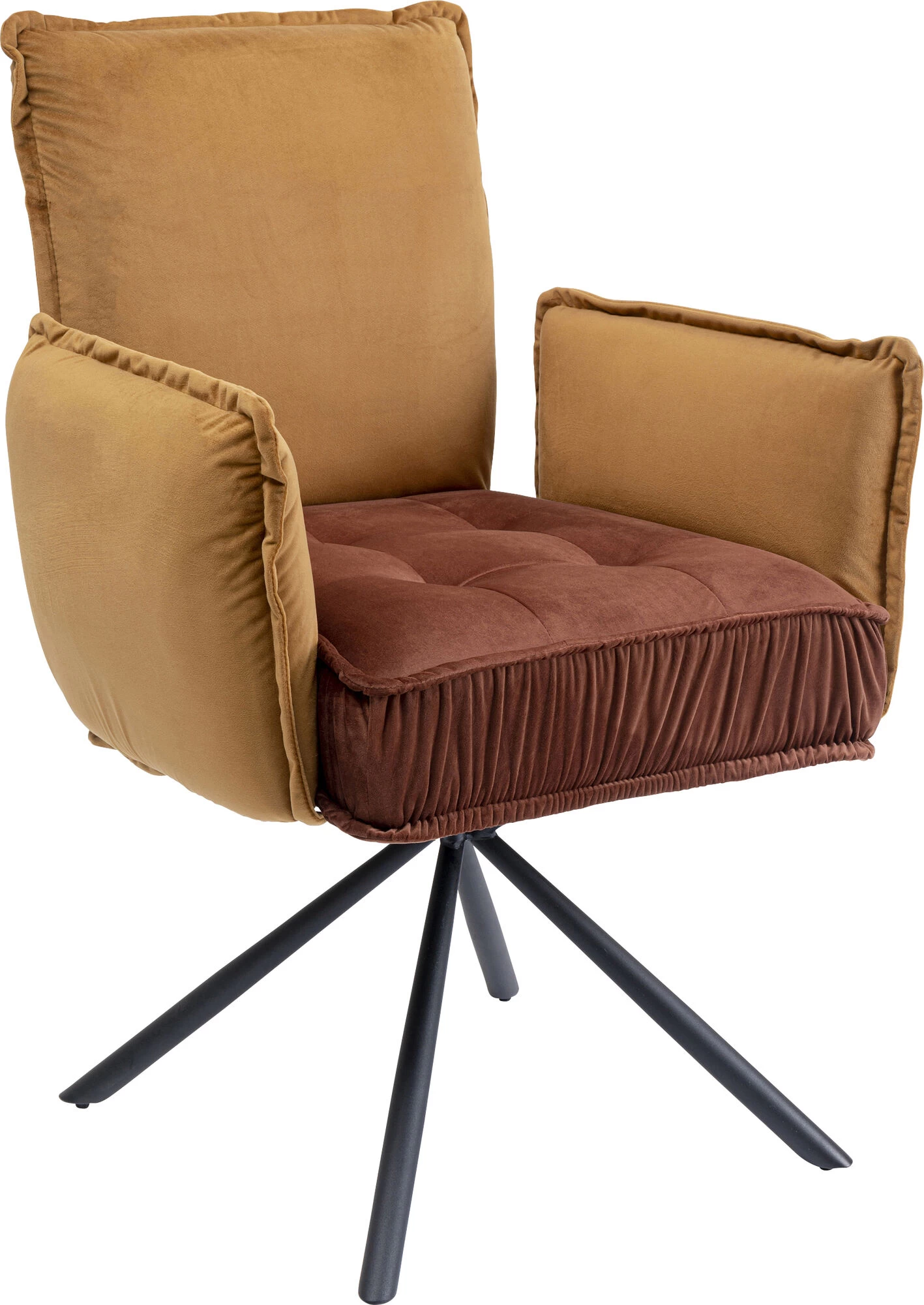 - Zweifarbiger Polsterstuhl in Braun mit Armlehnen und Sternfuß in Schwarz aus Metall, gekleidet in kuschelige Samtoptik