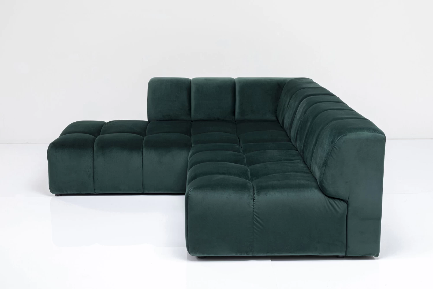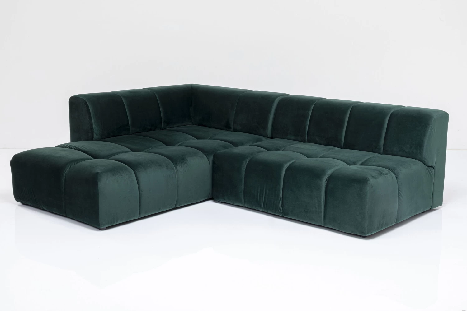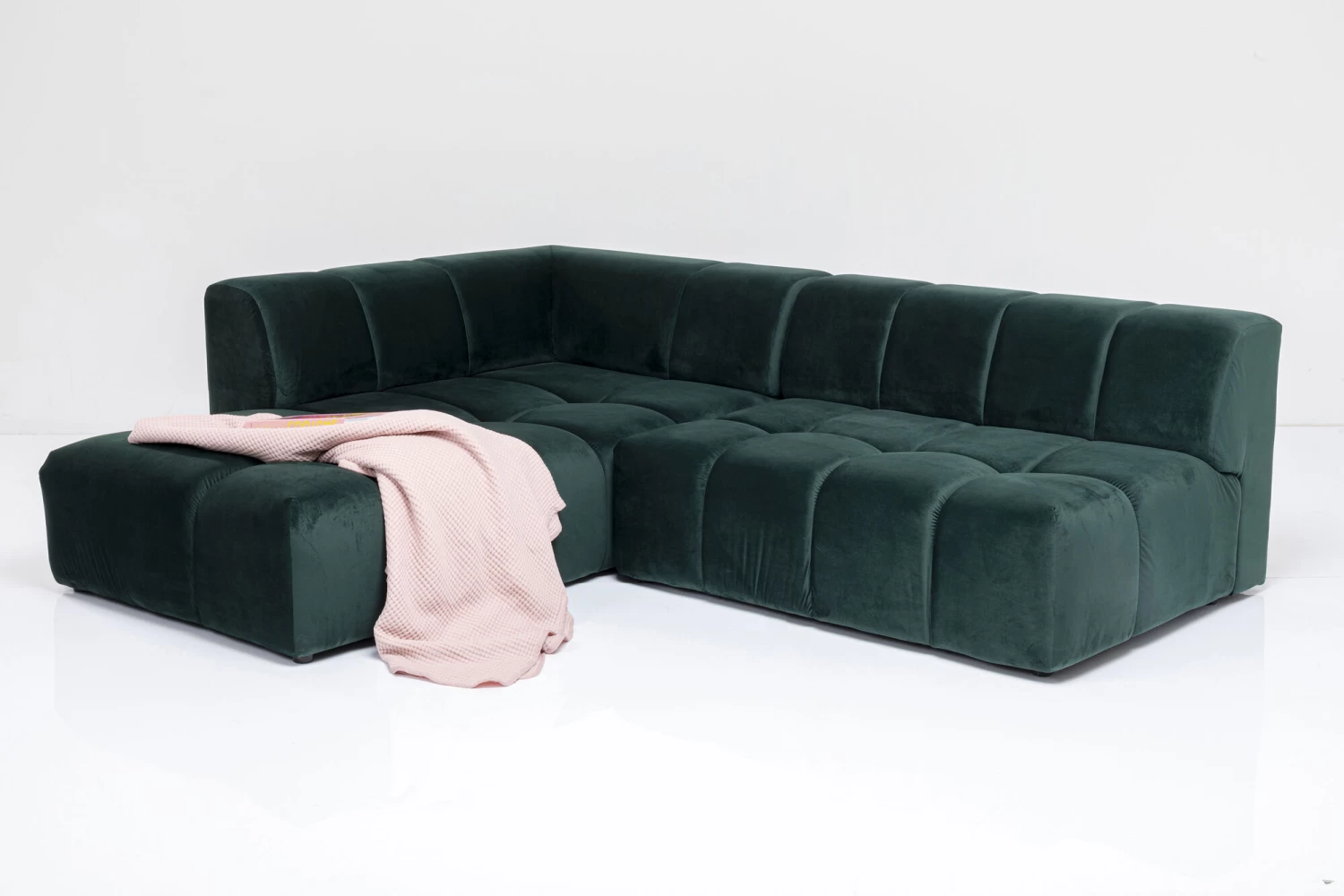 - Ecksofa in dunklem Grün mit Chaiselongue links, strapazierfähiger Bezug in schmeichelnder Samtoptik