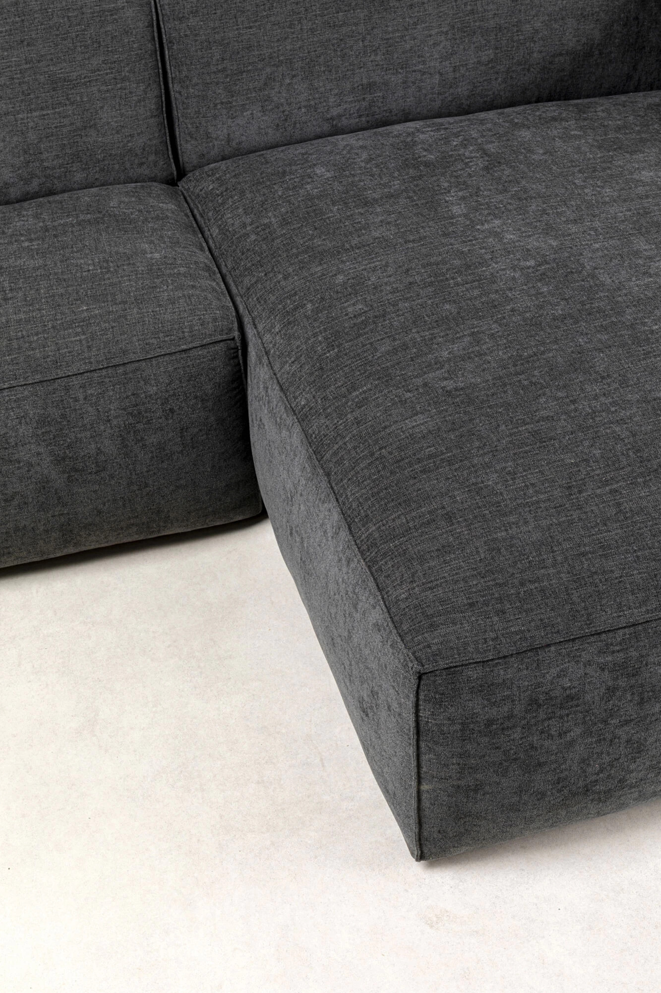 - Graues, bodentiefes Ecksofa mit Ottomane rechts, 72x335x170 cm (H/B/T)