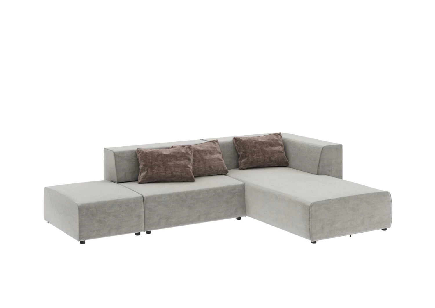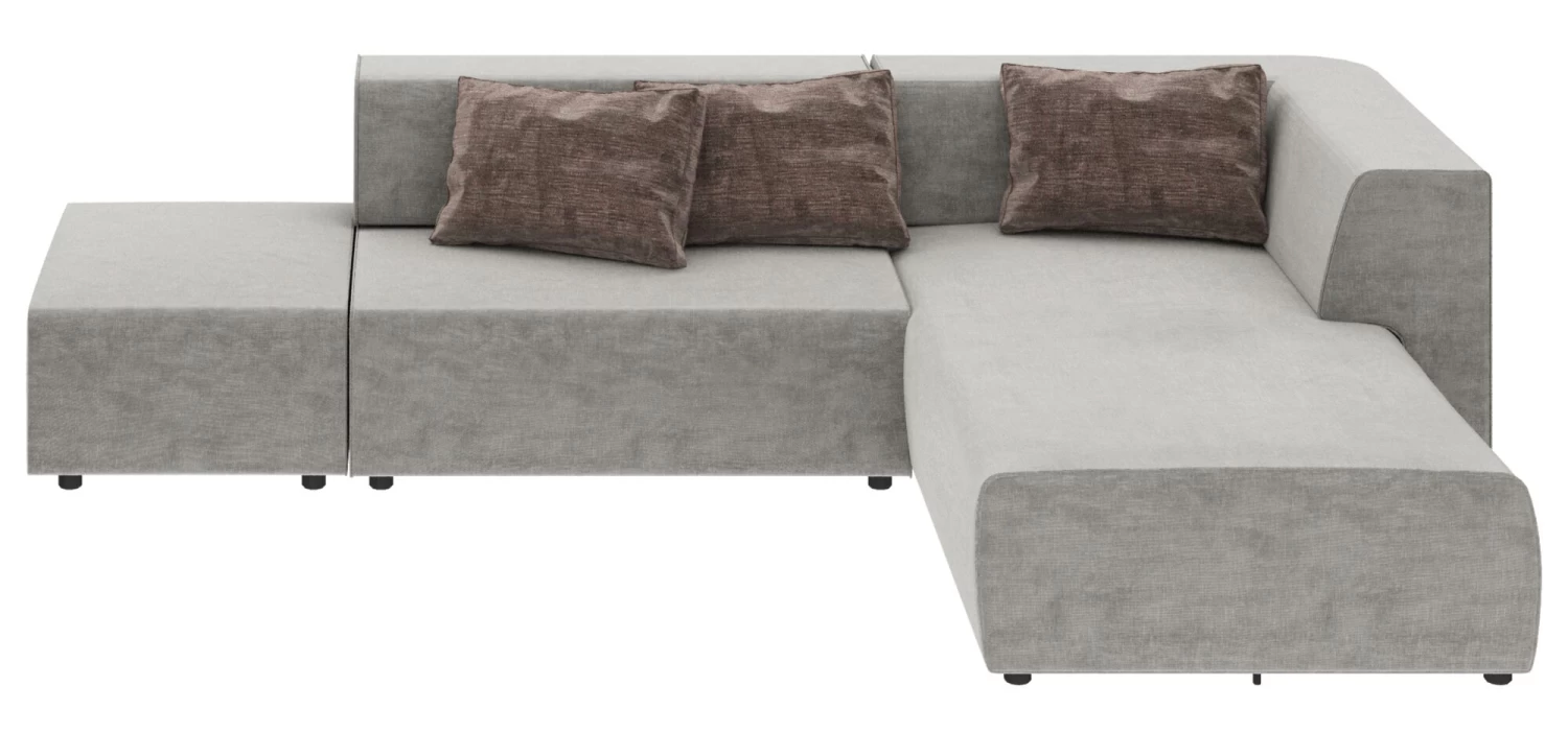 - Großzügiges Ecksofa mit mobilem Hockerelement. Drei dunkelgraue, rechteckige Kissen wie abgebildet im Lieferumfang bereits enthalten