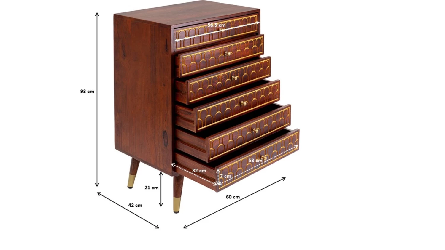 - Vielseitig nutzbar: Im Wohnzimmer, Schlafzimmer oder im Flur ist die Schubladenkommode ein außergewöhnlicher Blickfang