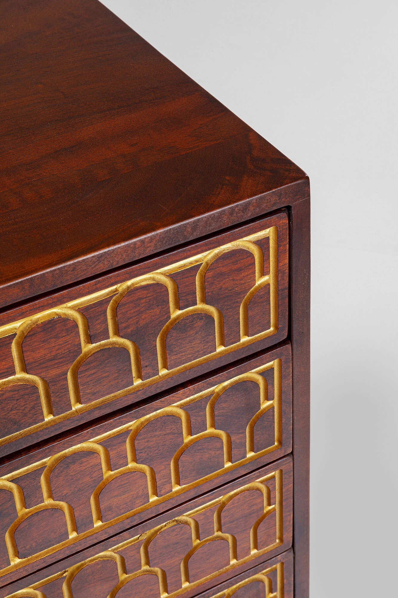 - Aufwendige Handarbeit: Die Kommode aus Holz wird von Hand mit eingravierten, goldenen Ornamenten verziert
