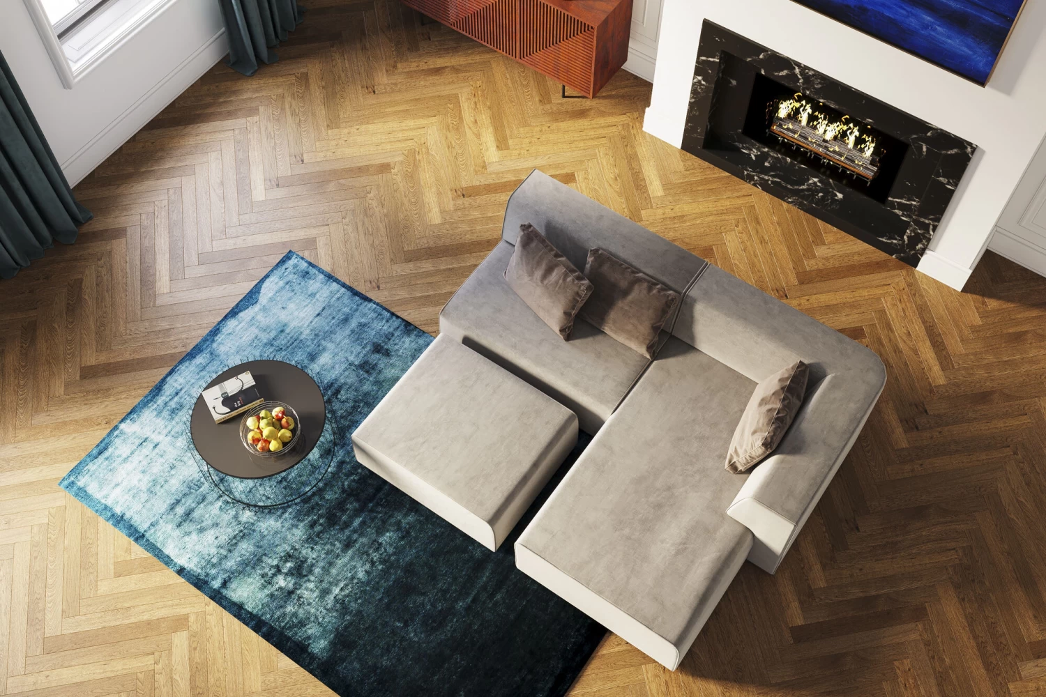 - Ottomane aus dem Modul-Sofa-System Infinity mit einem weichen Stoffbezug in Grau für die linke Sofaseite