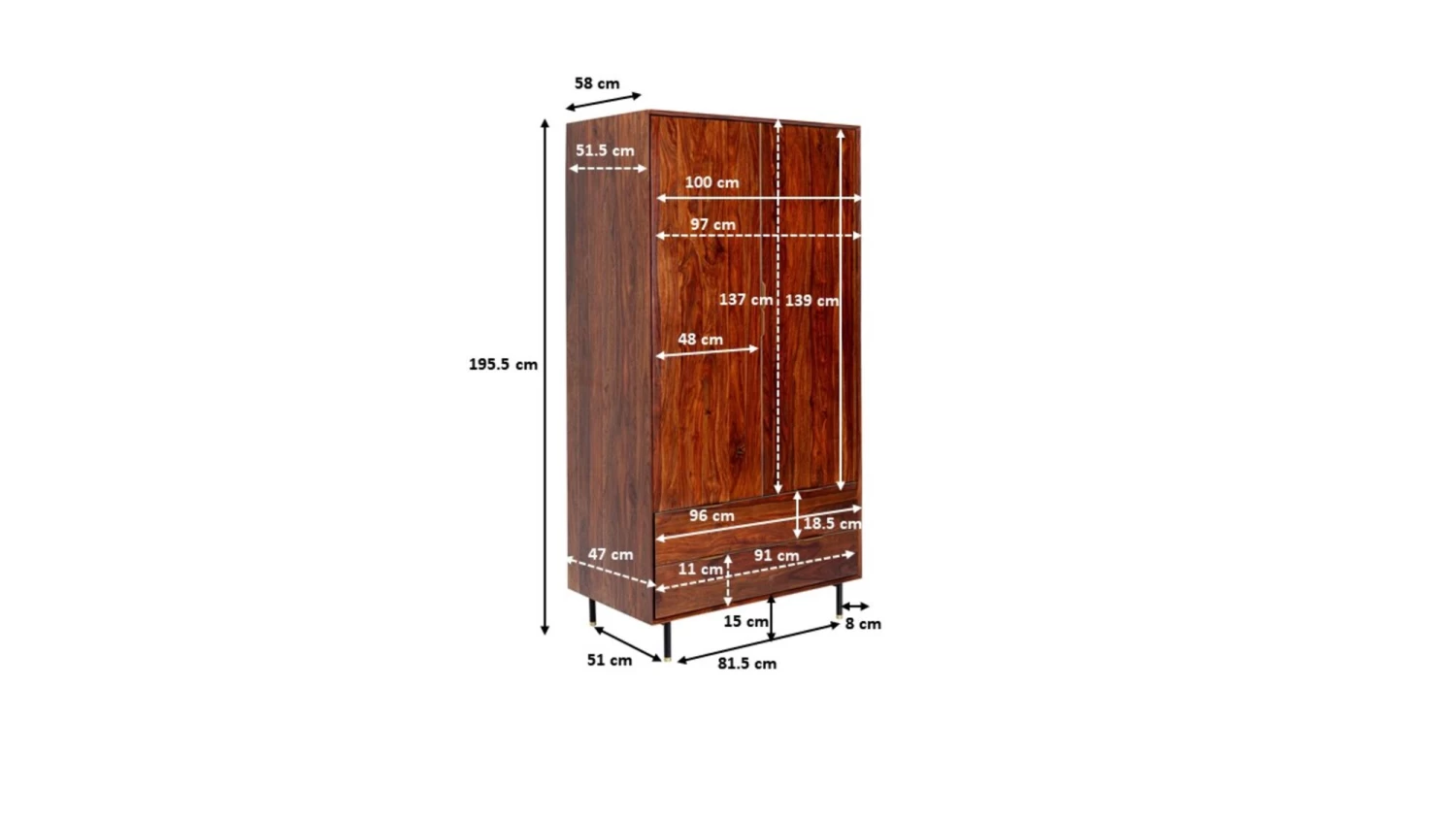 - Jede Menge Stauraum: Hinter zwei Türen und in zwei Schubladen ist viel Platz für Jacken, Hosen, Pullis und vieles mehr