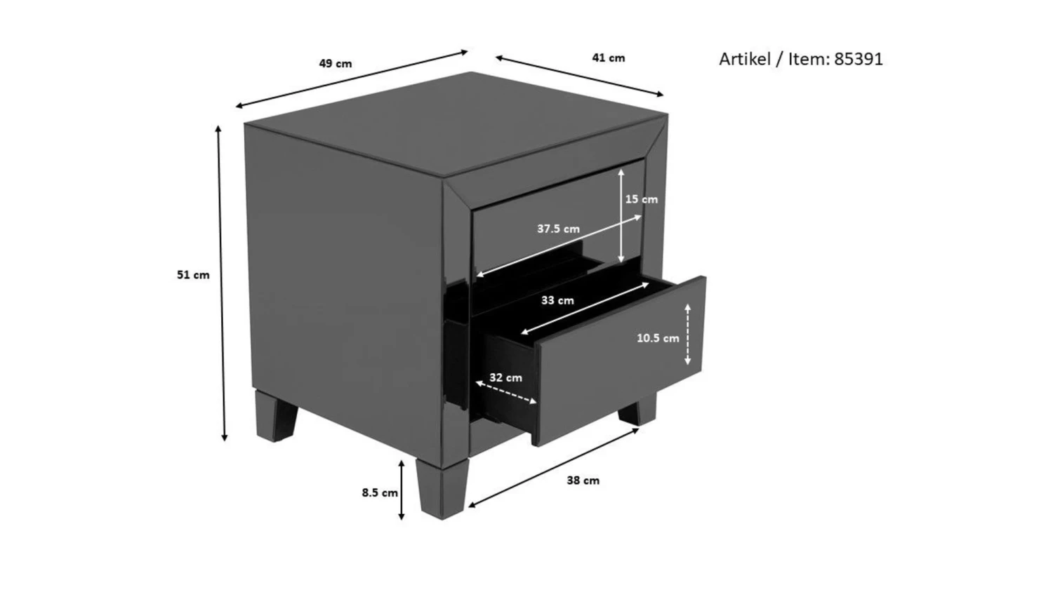 - Kleine, luxuriöse Kommode mit großem Glamor Faktor, Griffen aus echtem Glas und Stauraum in zwei Schubladen