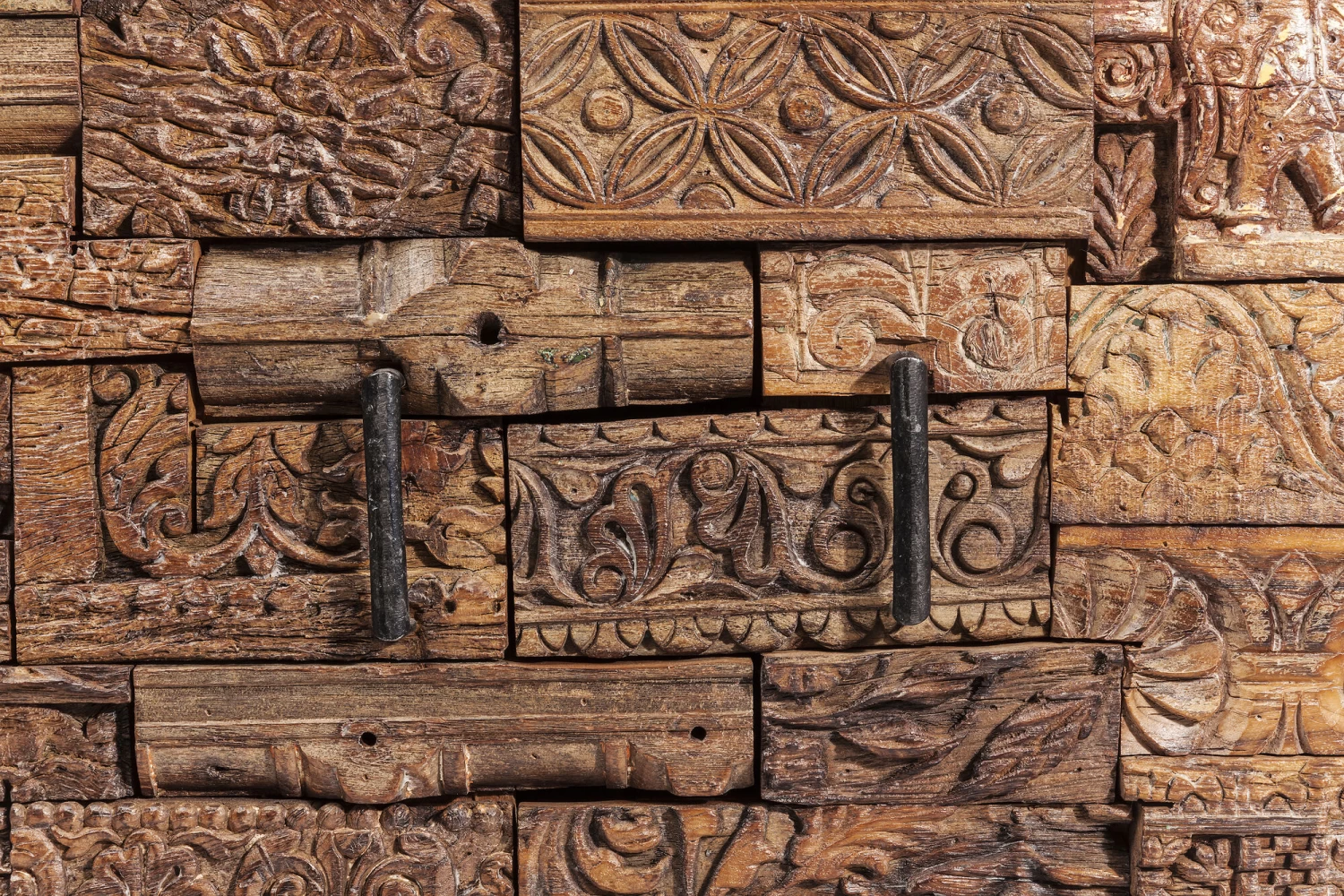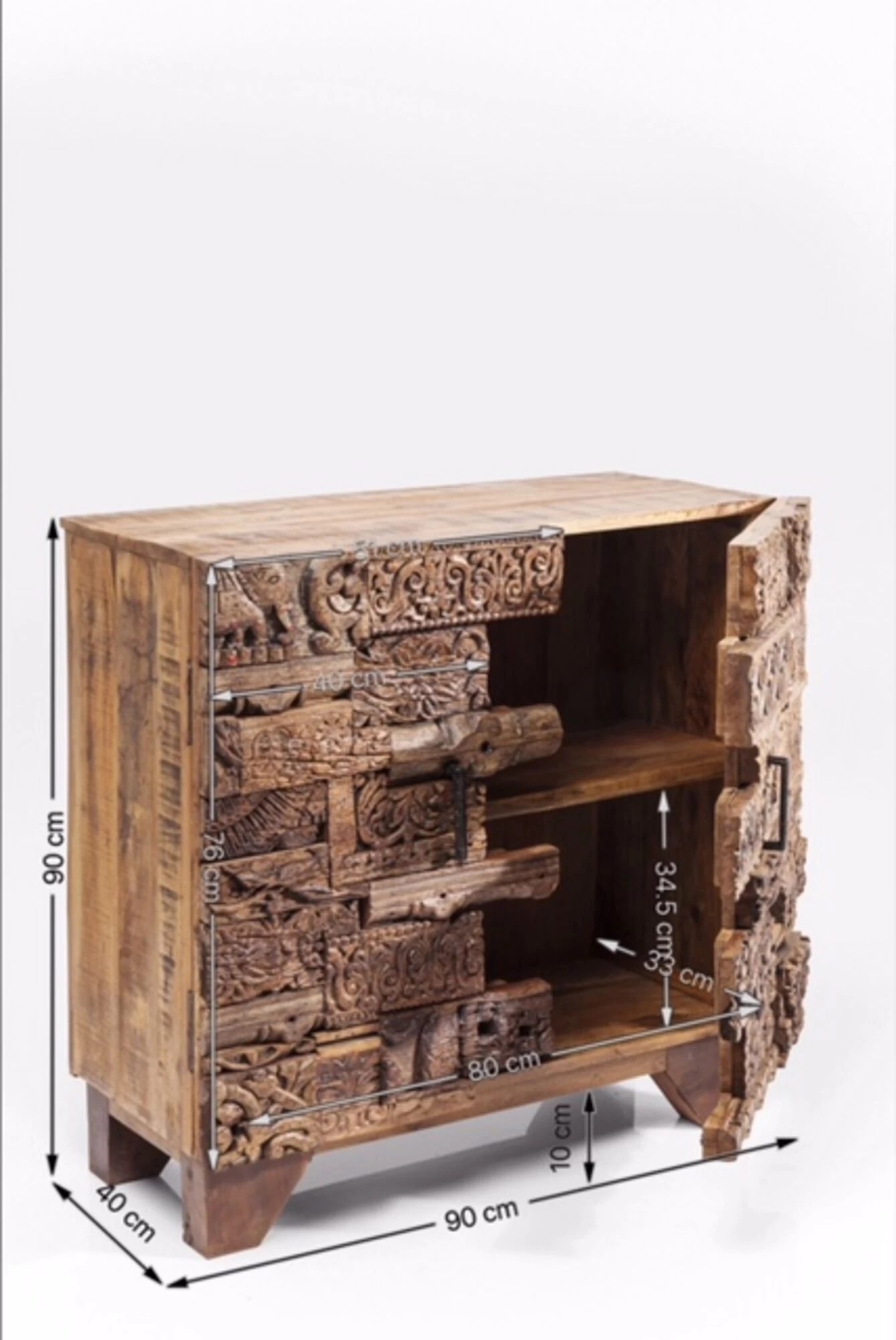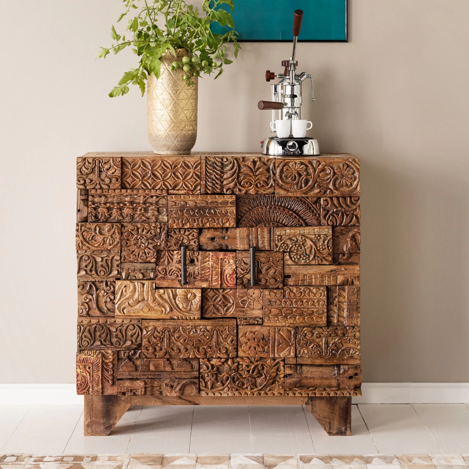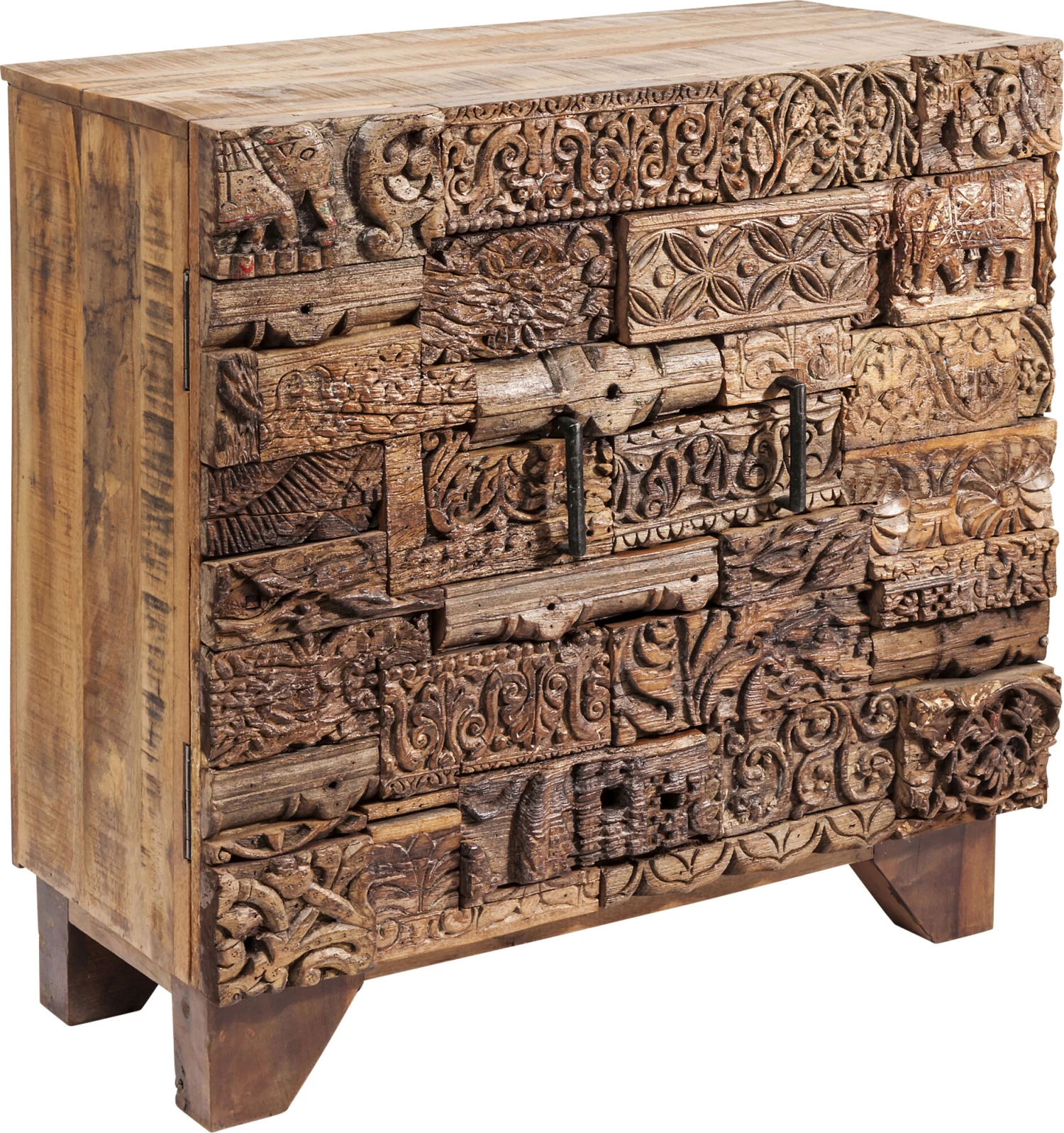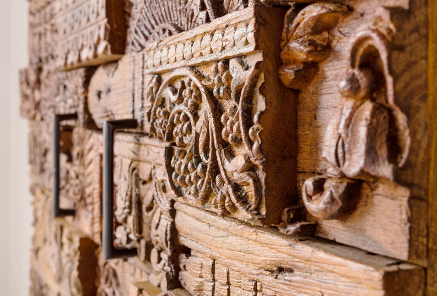 - Rechteckige, kompakte Kommode aus Mango-Massivholz mit handgeschnitzten Ornamenten