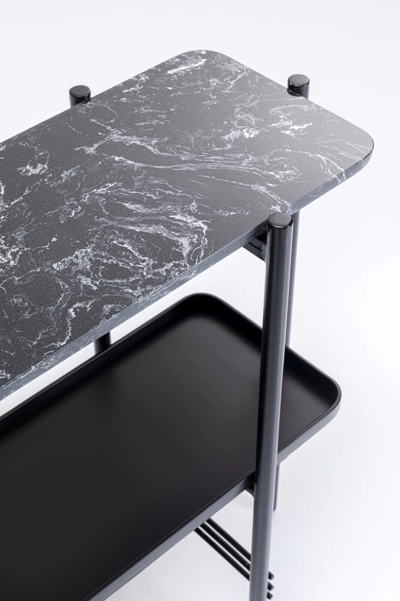 - Mehr als zwei Meter Abstellfläche für Dekoration und Nützliches auf den beiden Böden der Stahlkonsole
