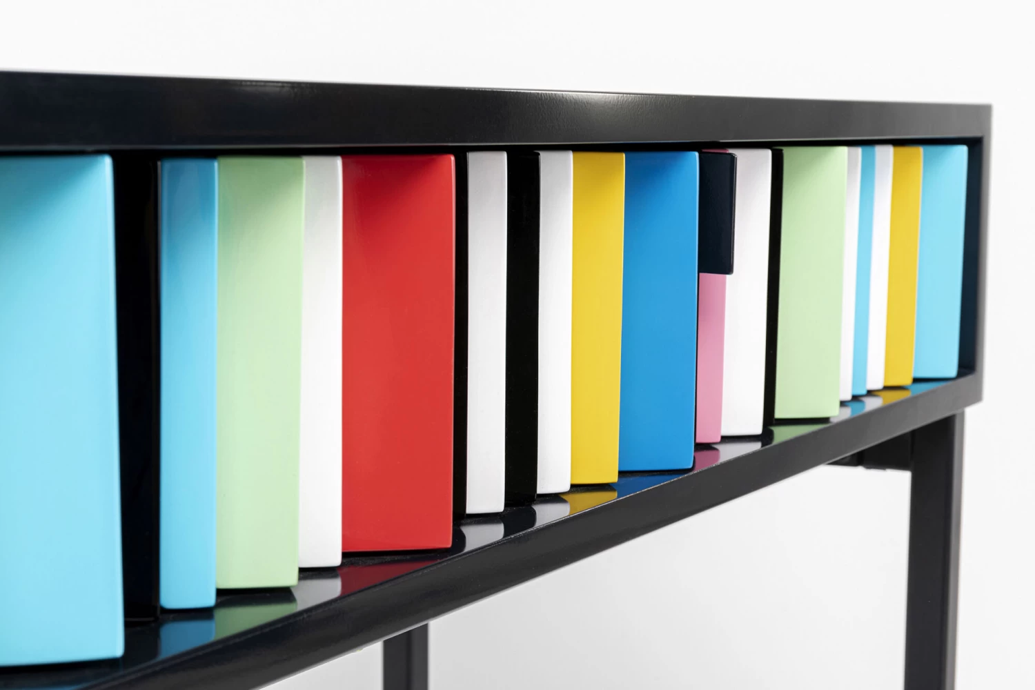 - Schwarze Konsole mit bunter Front, 78 x 135.5 x 40 cm (H/B/T)
