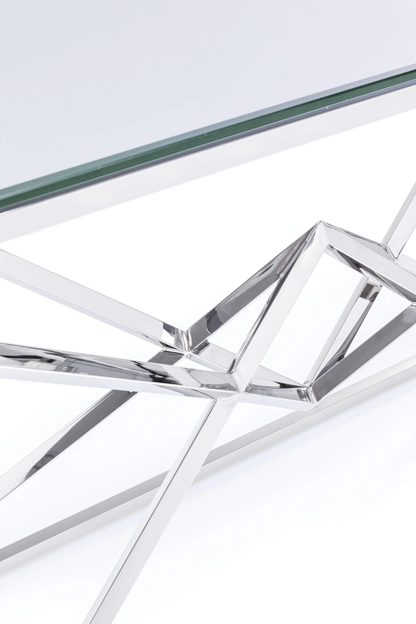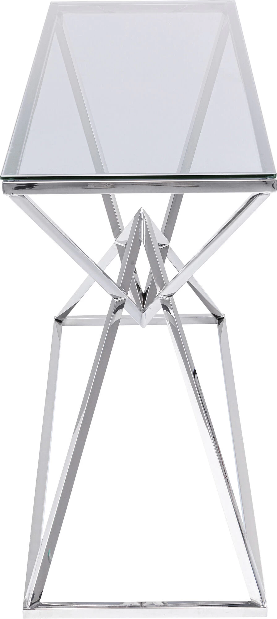 - Repräsentative, silbrig glänzende Konsole aus poliertem Edelstahl mit exklusivem Gestell