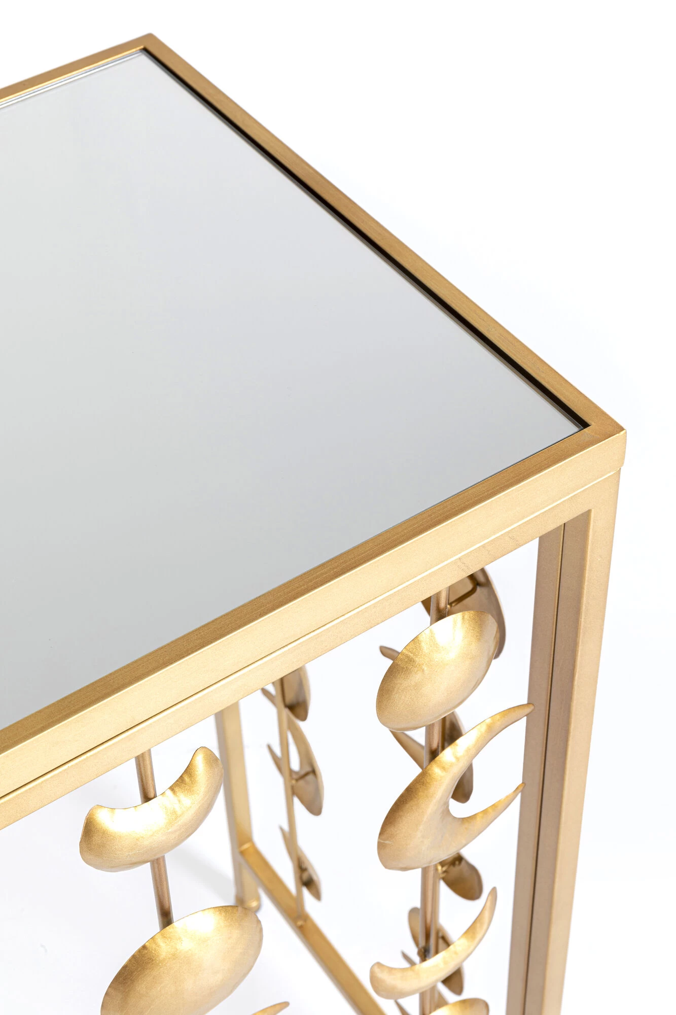 - Goldene Konsole aus lackiertem Metall, 76 x 107 x 35.5 Zentimeter (H/B/T)