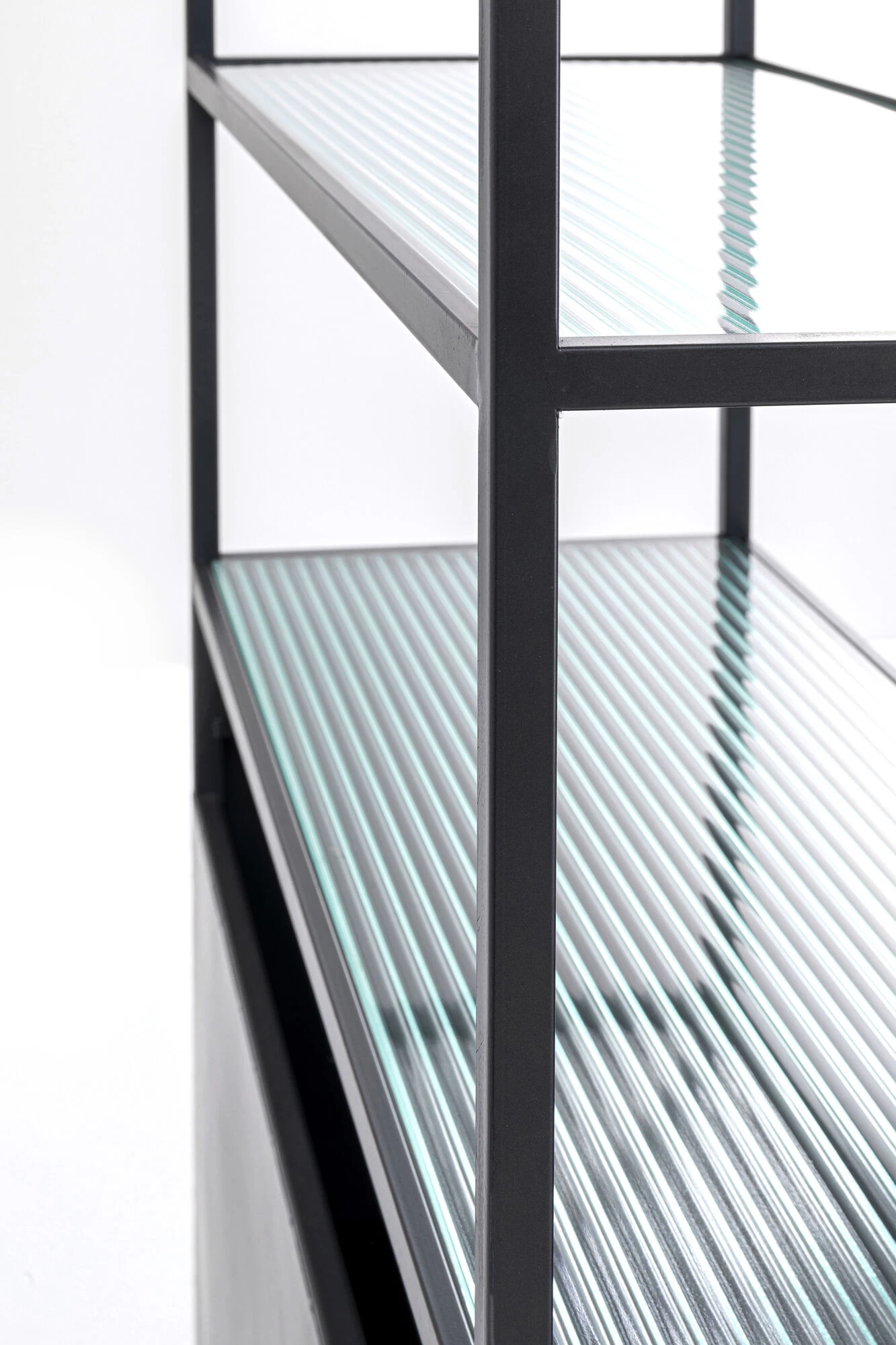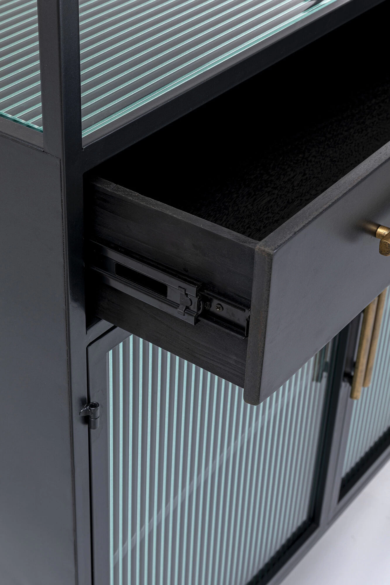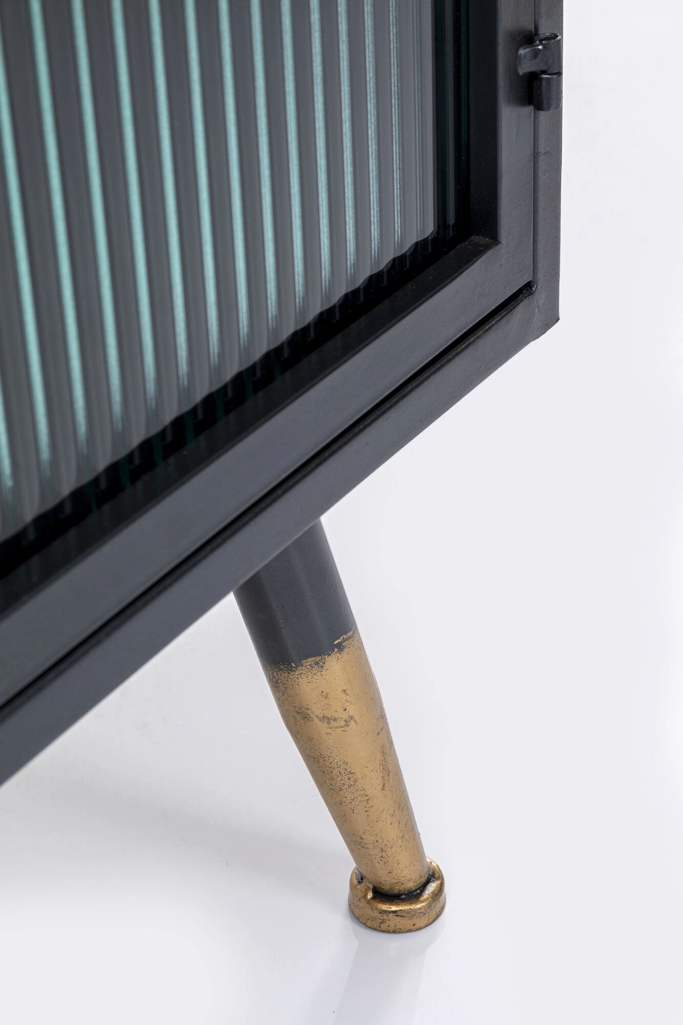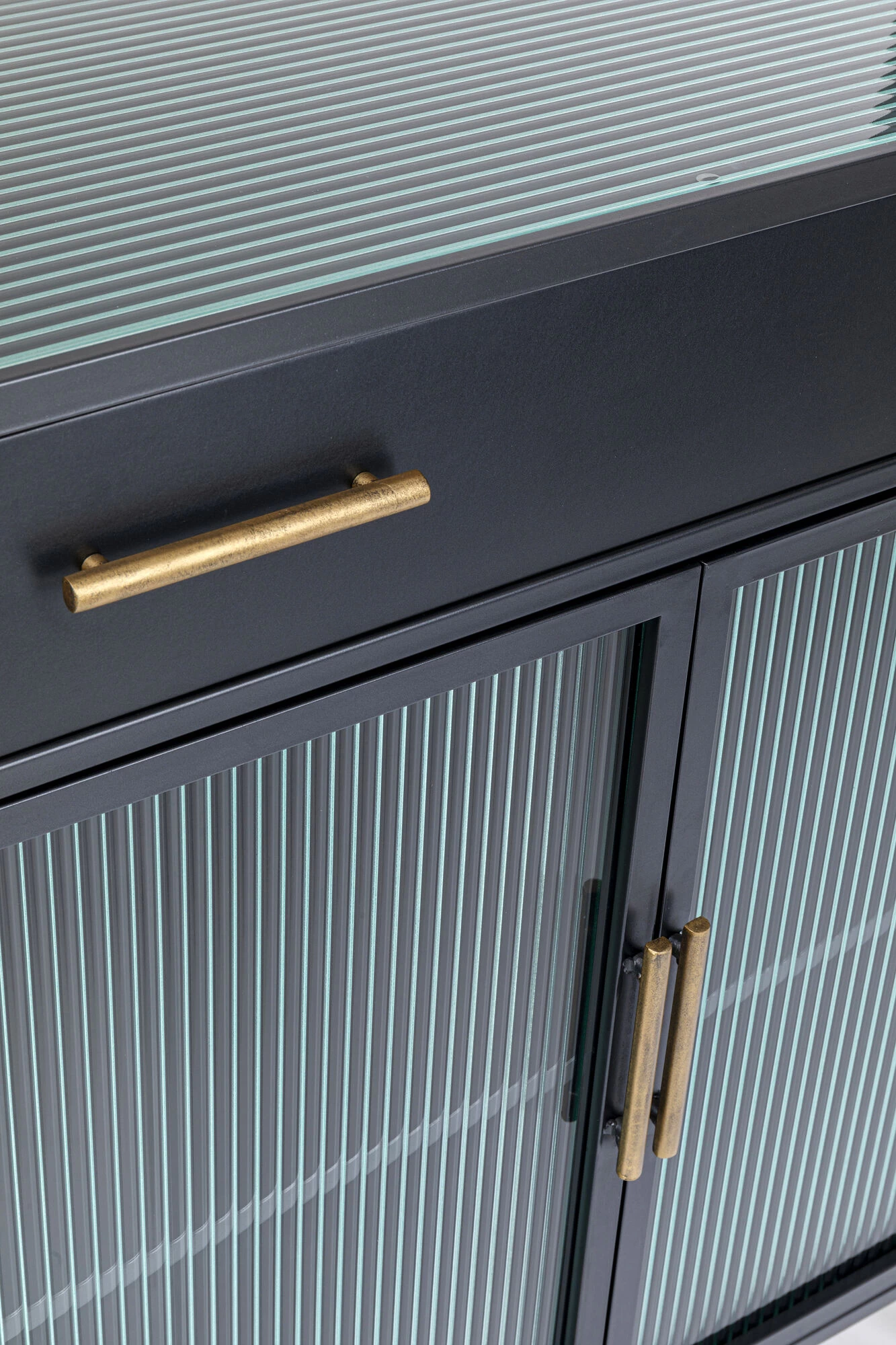 - Modernes Design: Das geriffelte Glas und die Messing-Griffe und Füße veredeln das Möbelstück