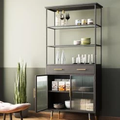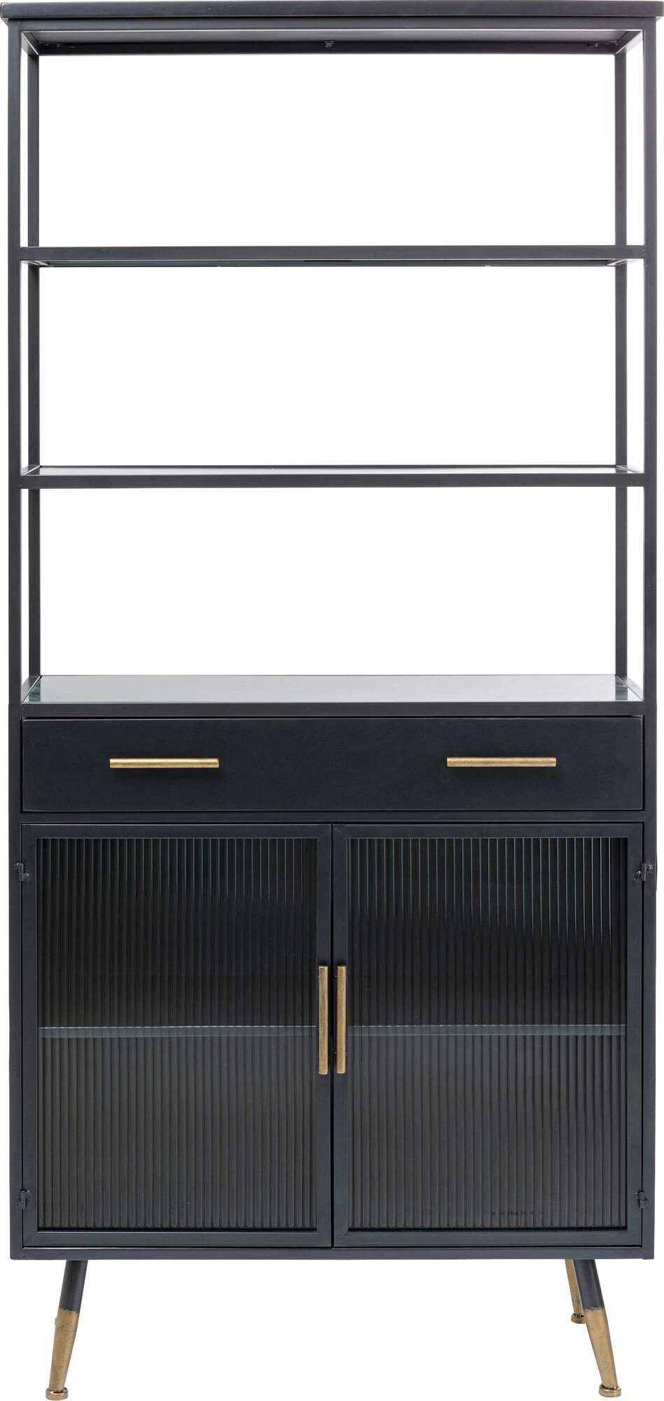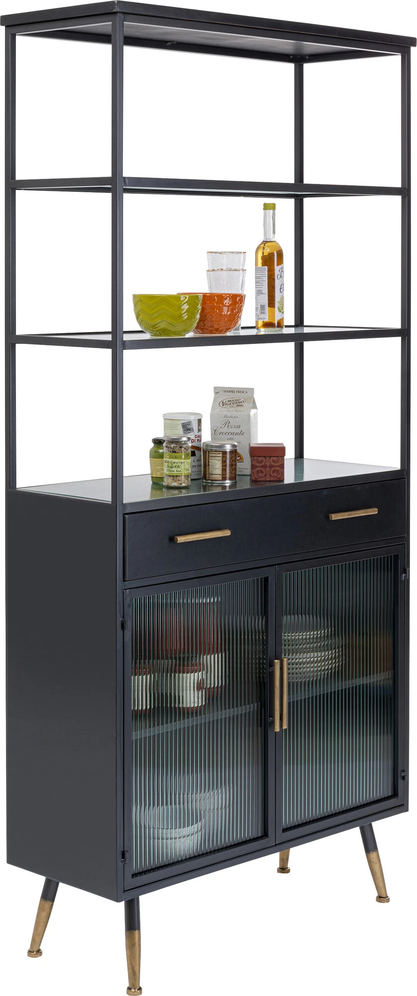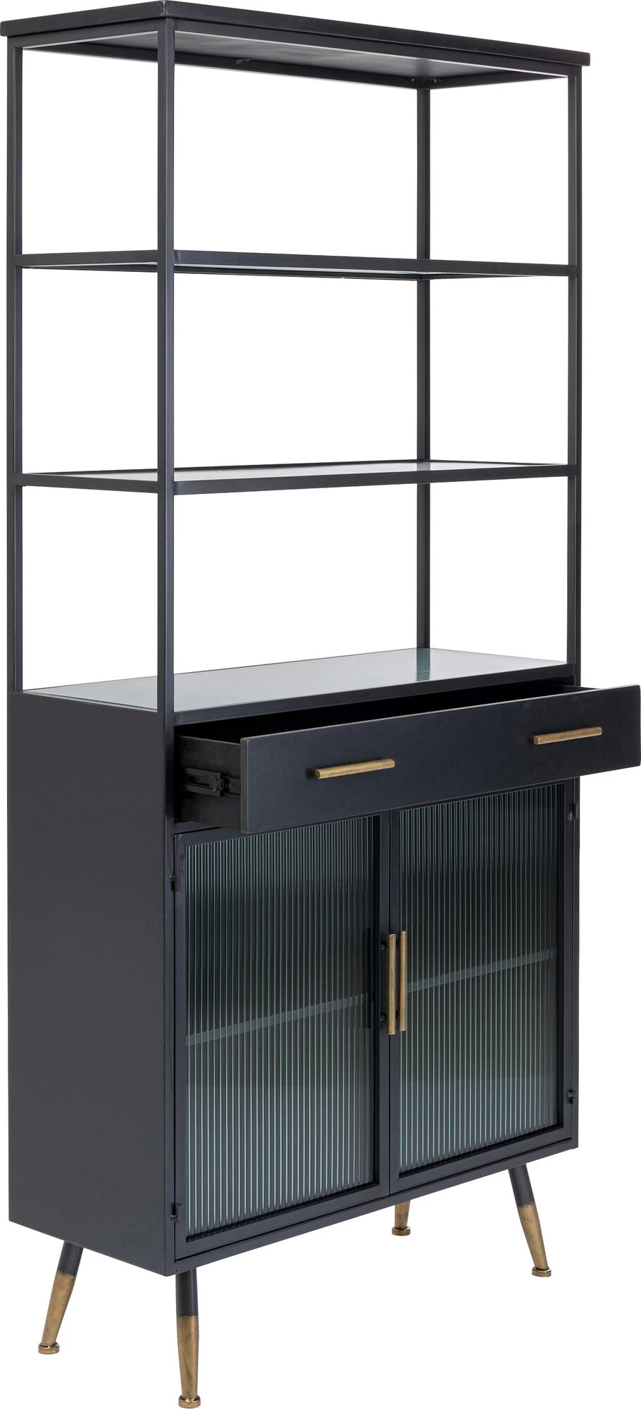 - Modernes Design: Das geriffelte Glas und die Messing-Griffe und Füße veredeln das Möbelstück