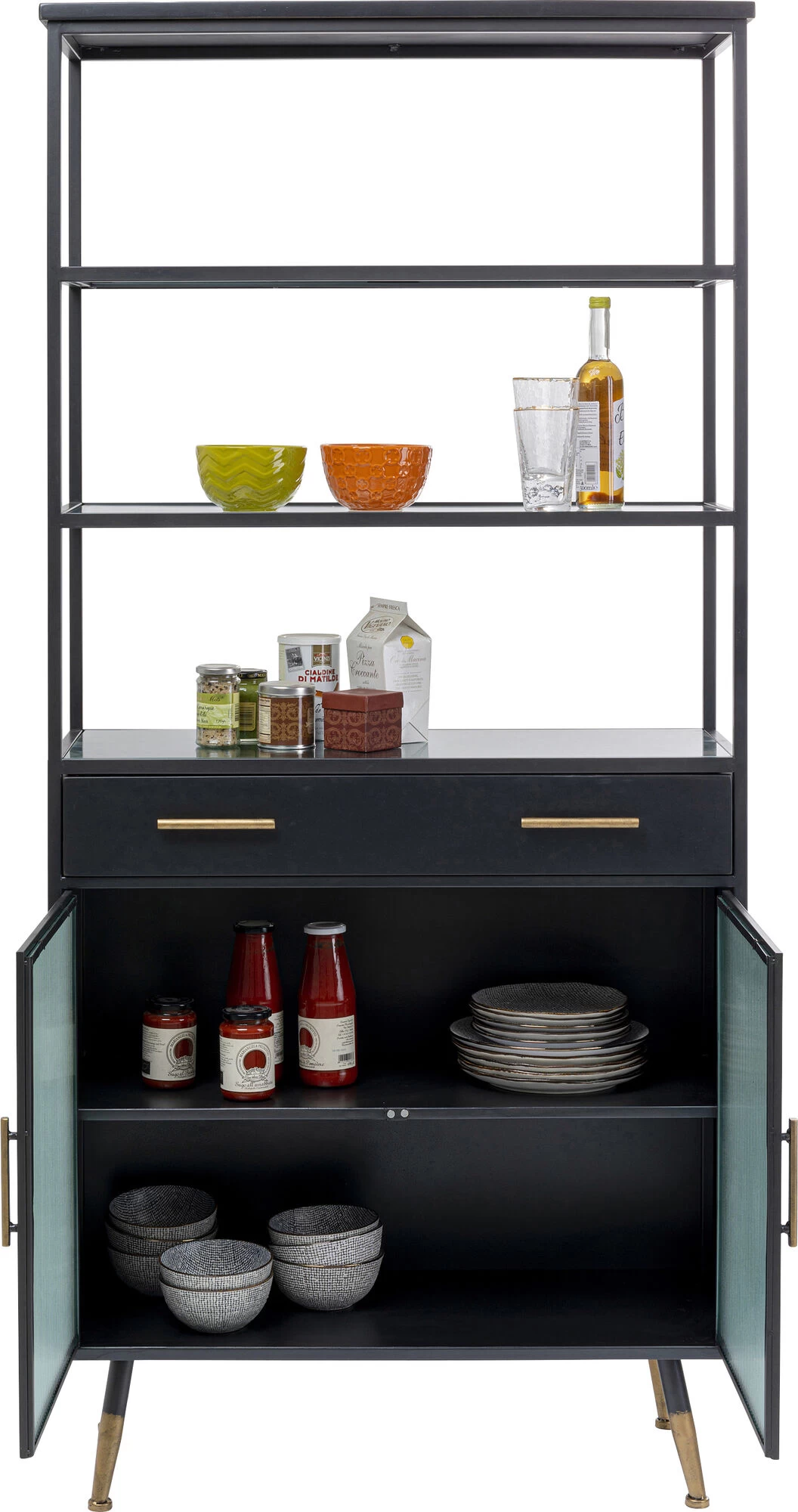 - Elegant und funktional: Neben zwei fest montierten Fachböden und einer herausnehmbaren Glasplatte gibt es auch eine Schublade sowie einen Schrank mit zwei Böden