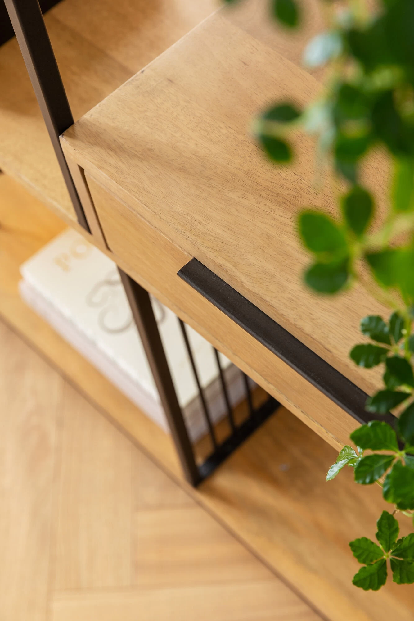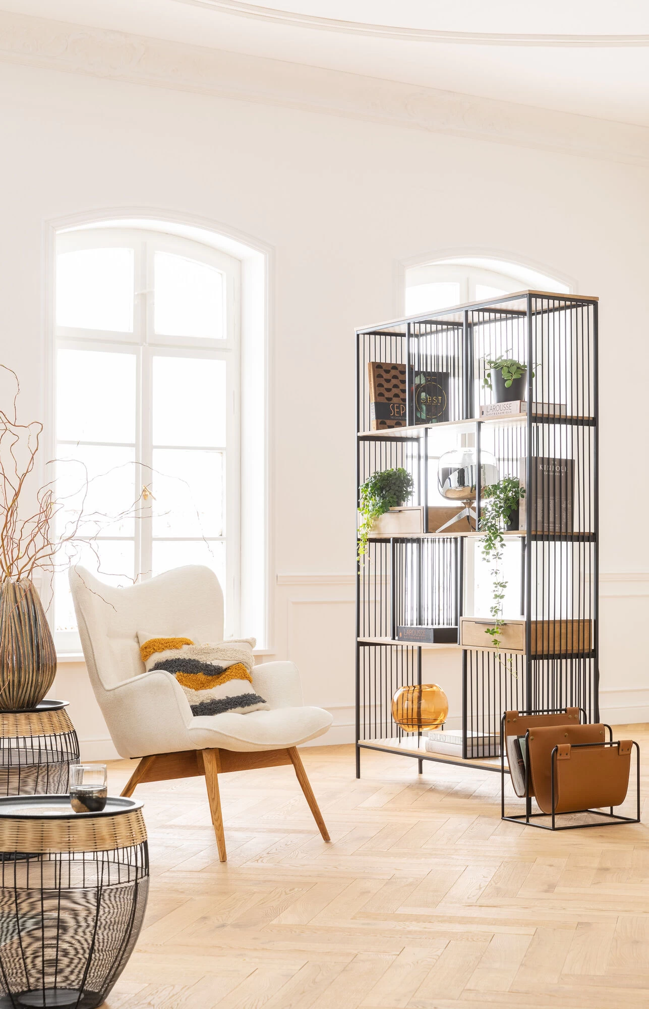 - Schwarz lackierter Stahl trifft helles Holz – passend zu vielen aktuellen Interior-Looks
