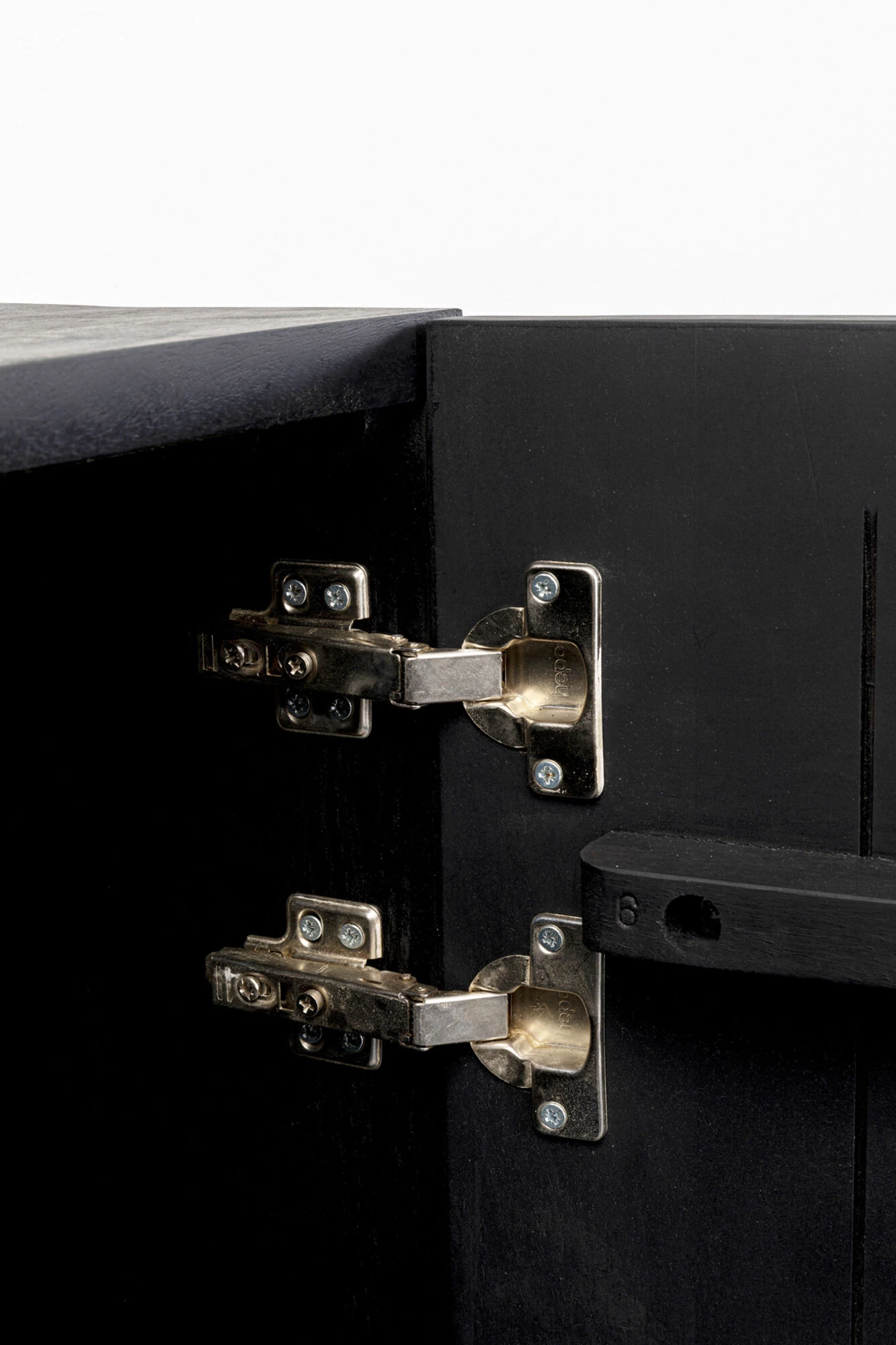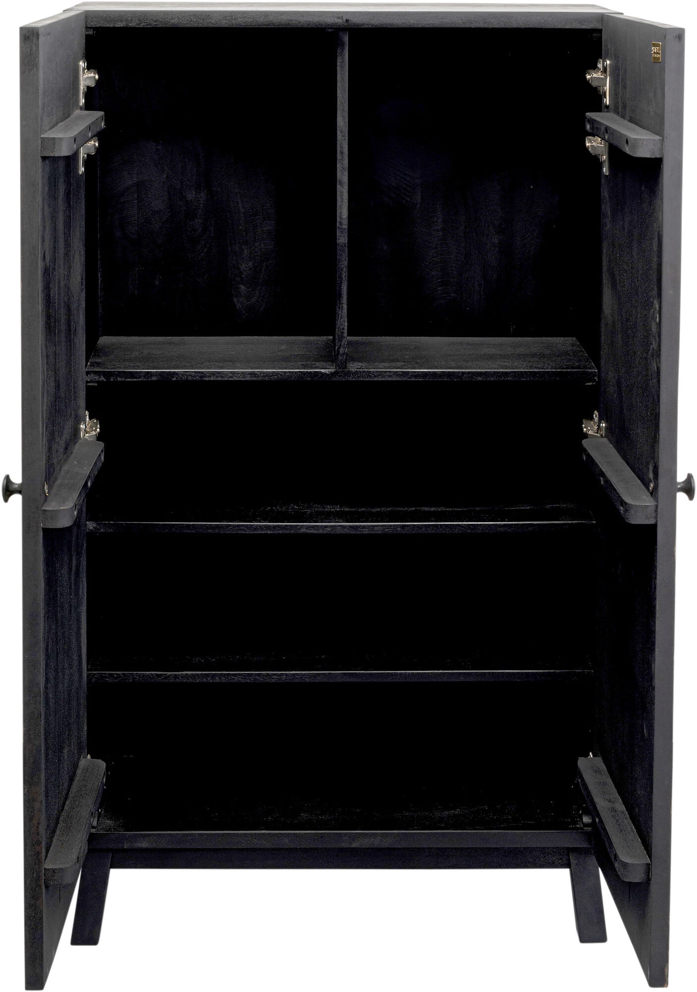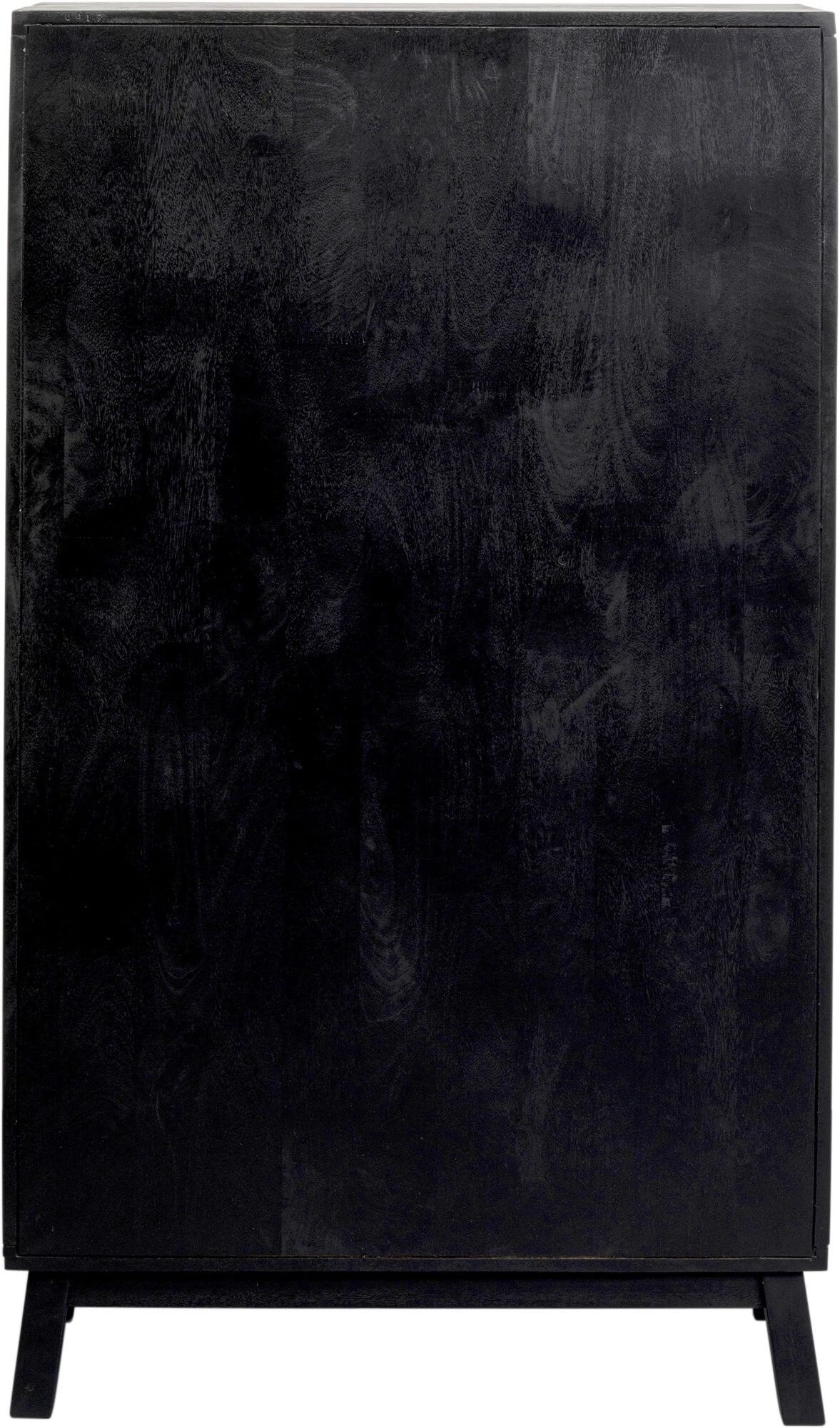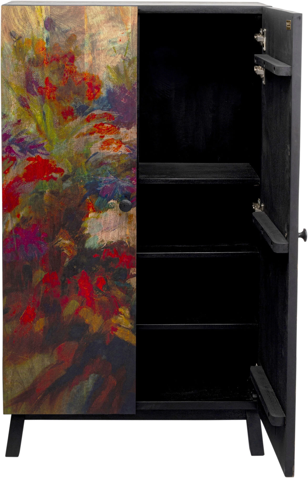 - Rechteckiger, kleiner Schrank mit schwarzem Korpus aus Mangoholz und einer Front mit Pflanzen- und Blumenmotiven