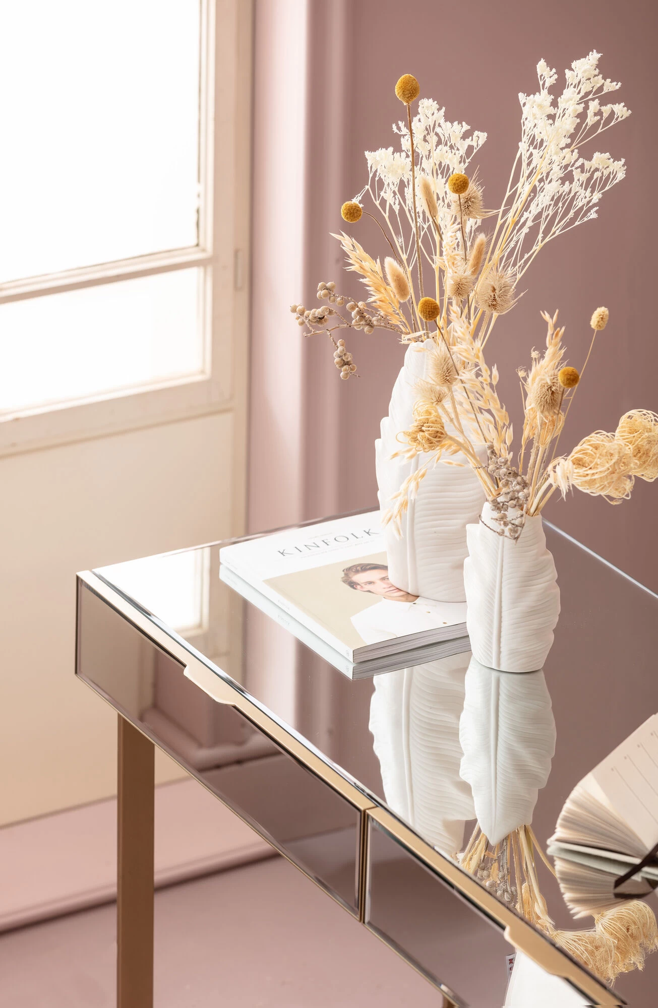 - Die goldenen Tischbeine sind ganz schlank gehalten, dadurch wirkt dieser Schreibtisch leicht