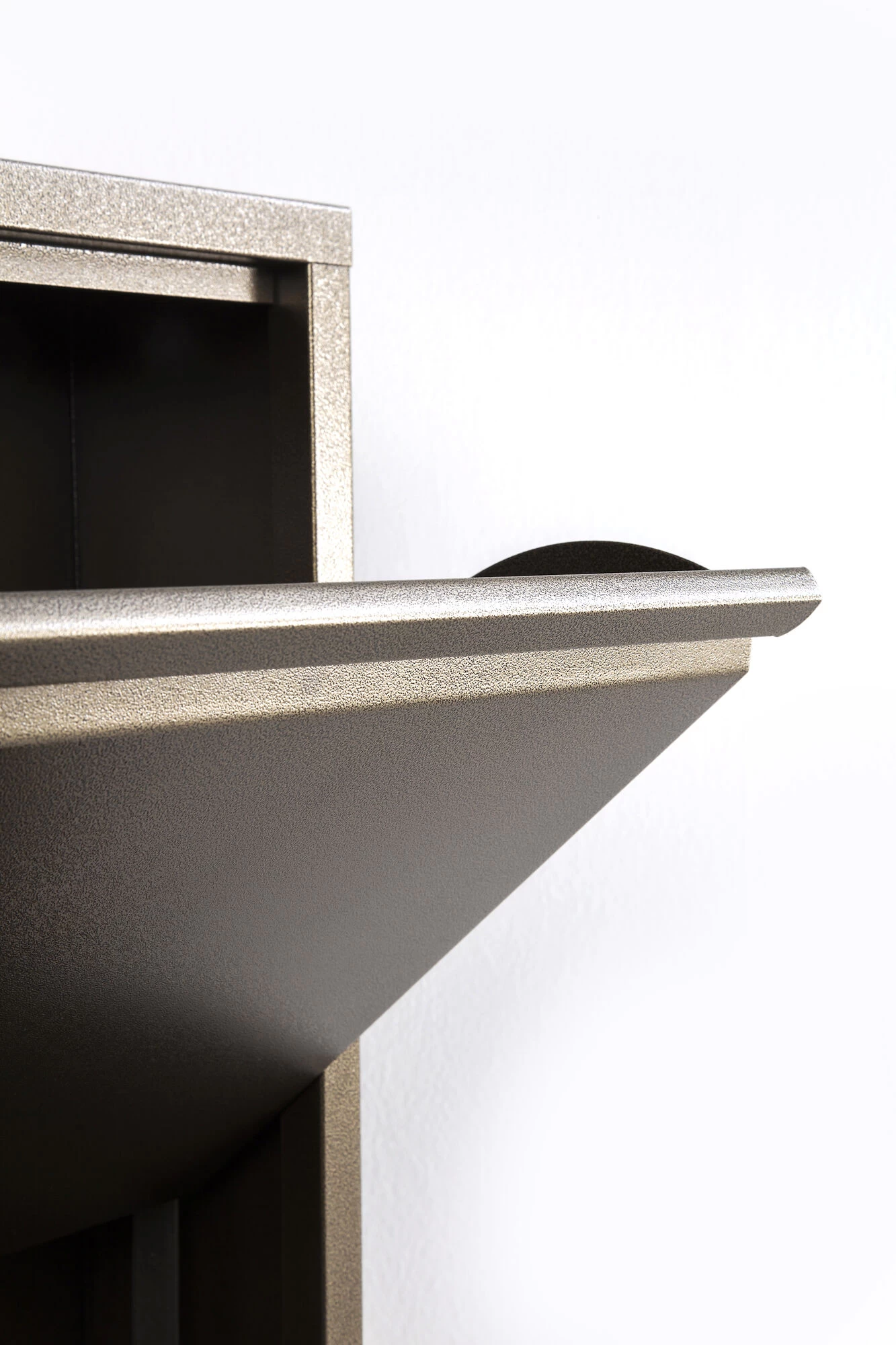 - Die mattmetallisch schimmernde Oberfläche in einem warmen Bronzeton macht aus dem Funktionsmöbel ein kleines Designerstück