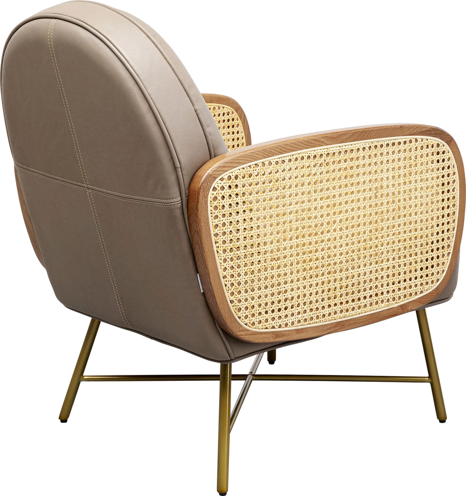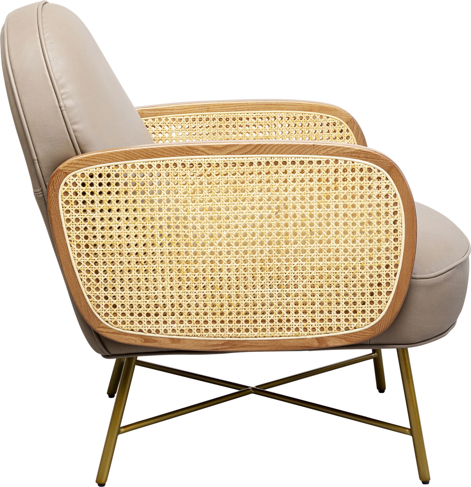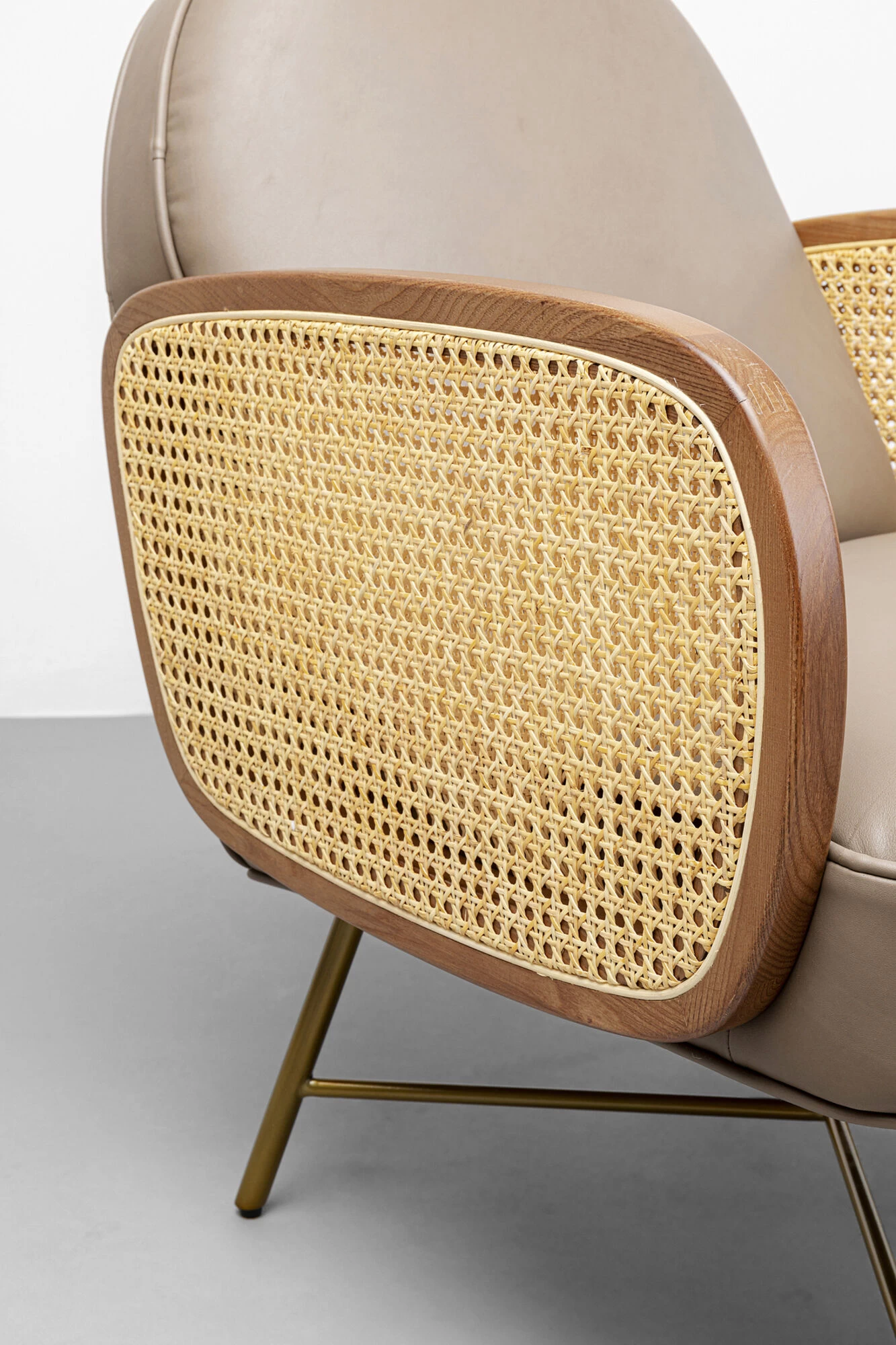 - Sessel aus Echtleder mit Armlehnen aus Rattan, 80 x 60 x 81 Zentimeter (H/B/T)