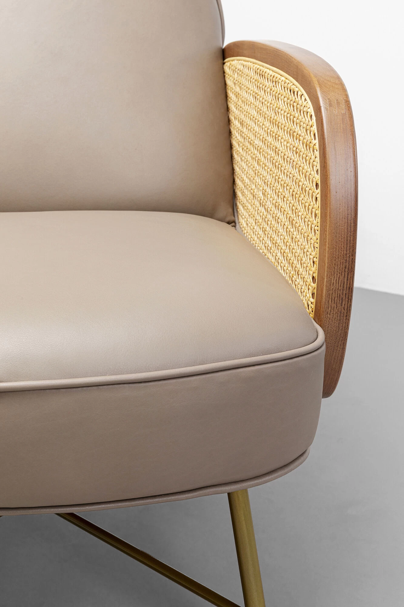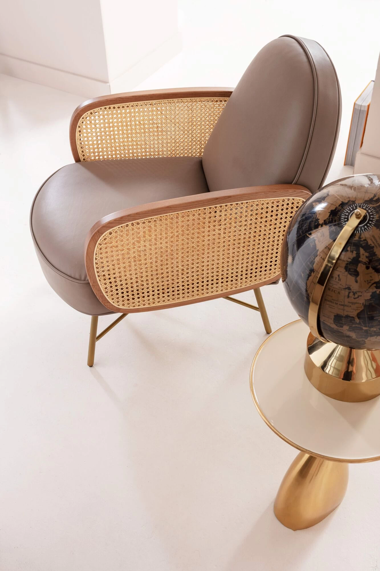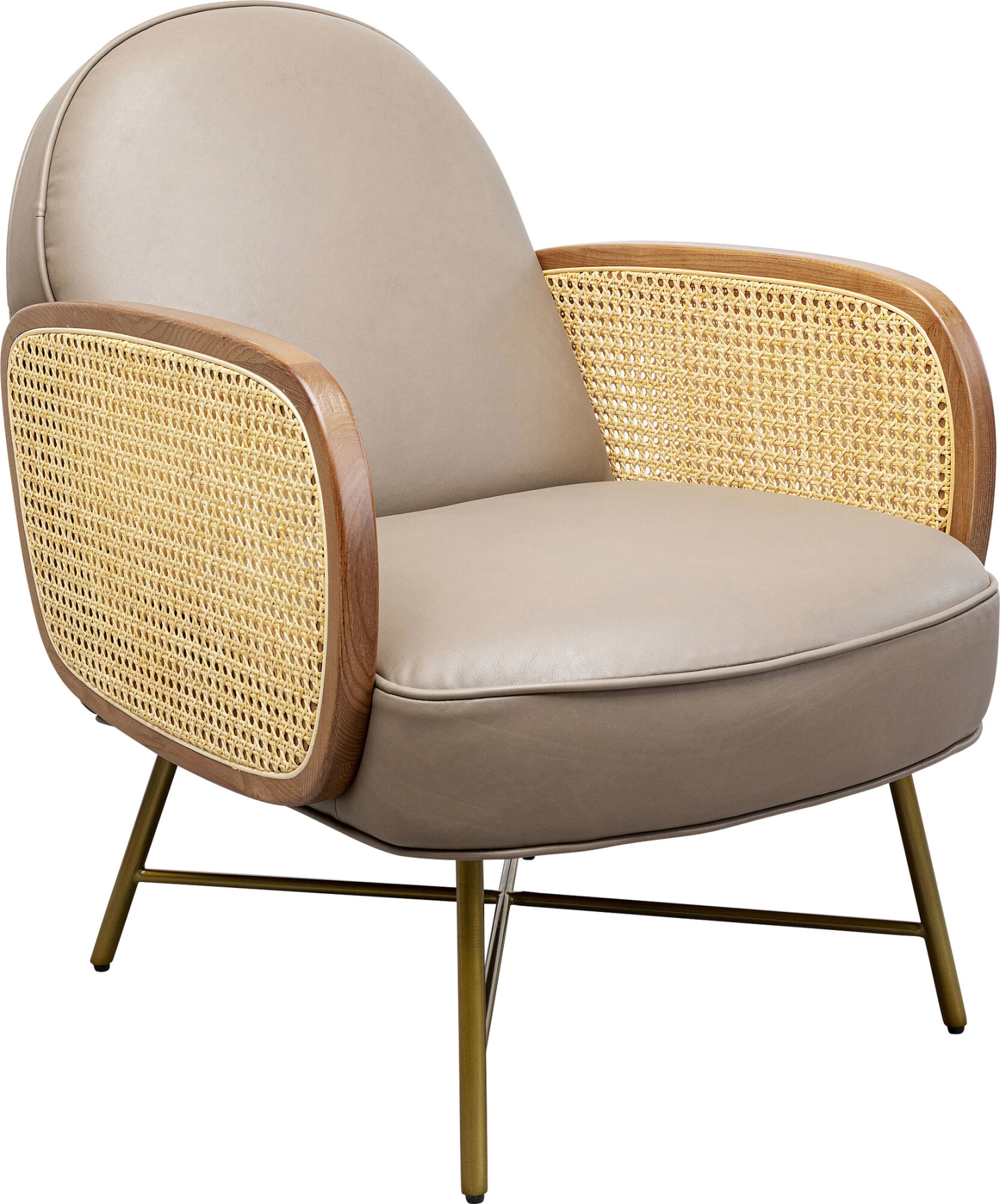 - Sessel aus Echtleder mit Armlehnen aus Rattan, 80 x 60 x 81 Zentimeter (H/B/T)