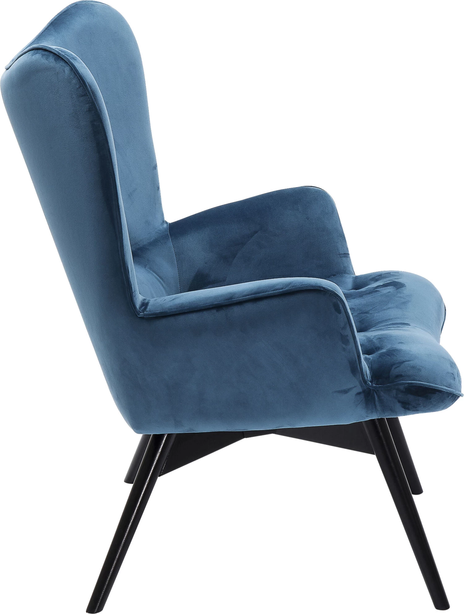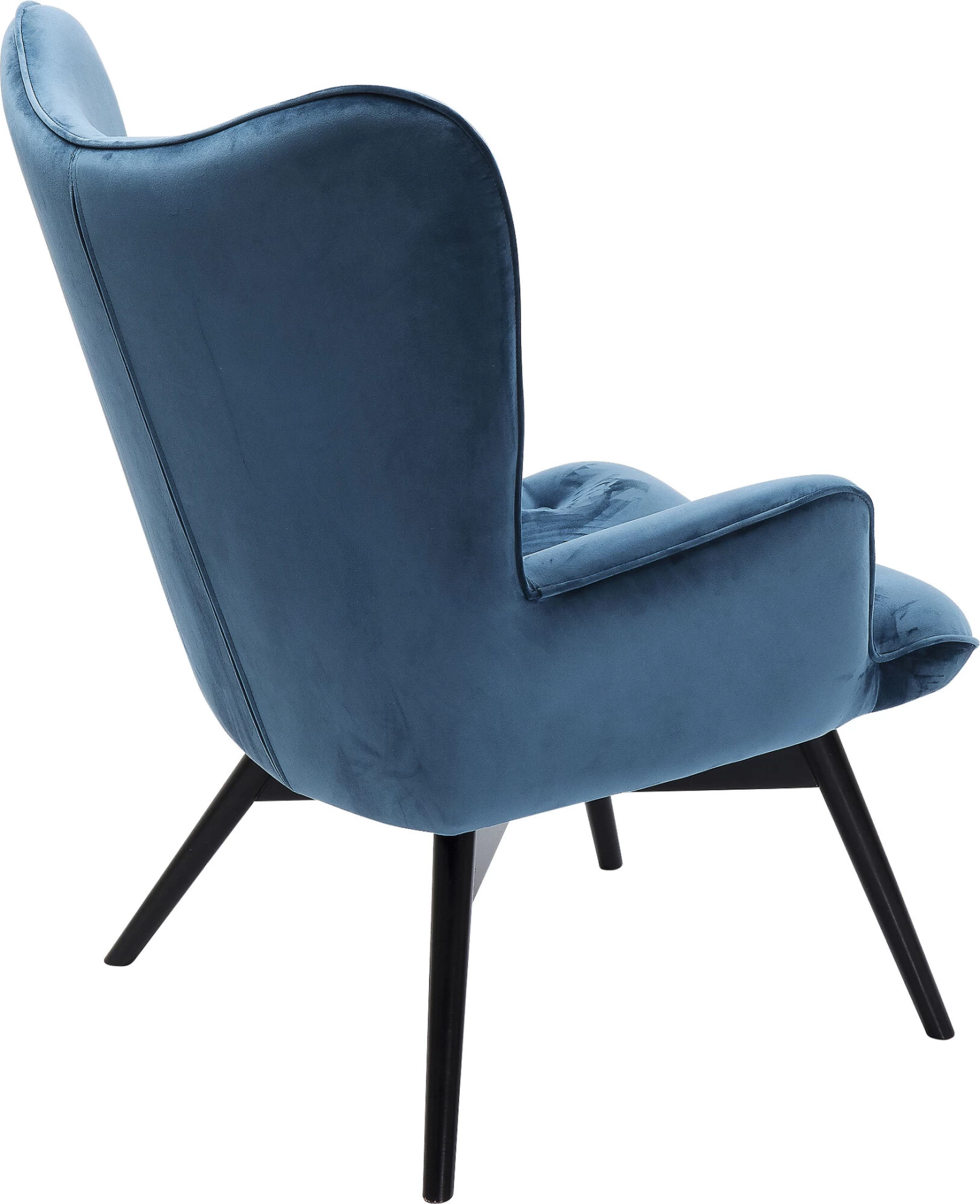 - Ein moderner, bequemer Polstersessel im Retro Design – die Neuauflage des klassischen Ohrensessels. Hier in samtigem Petrol-Blau mit schwarzen Beinen