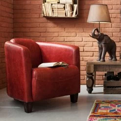- Roter Clubsessel in hochwertigem Leder mit Vintage-Touch und attraktiven Ziernähten