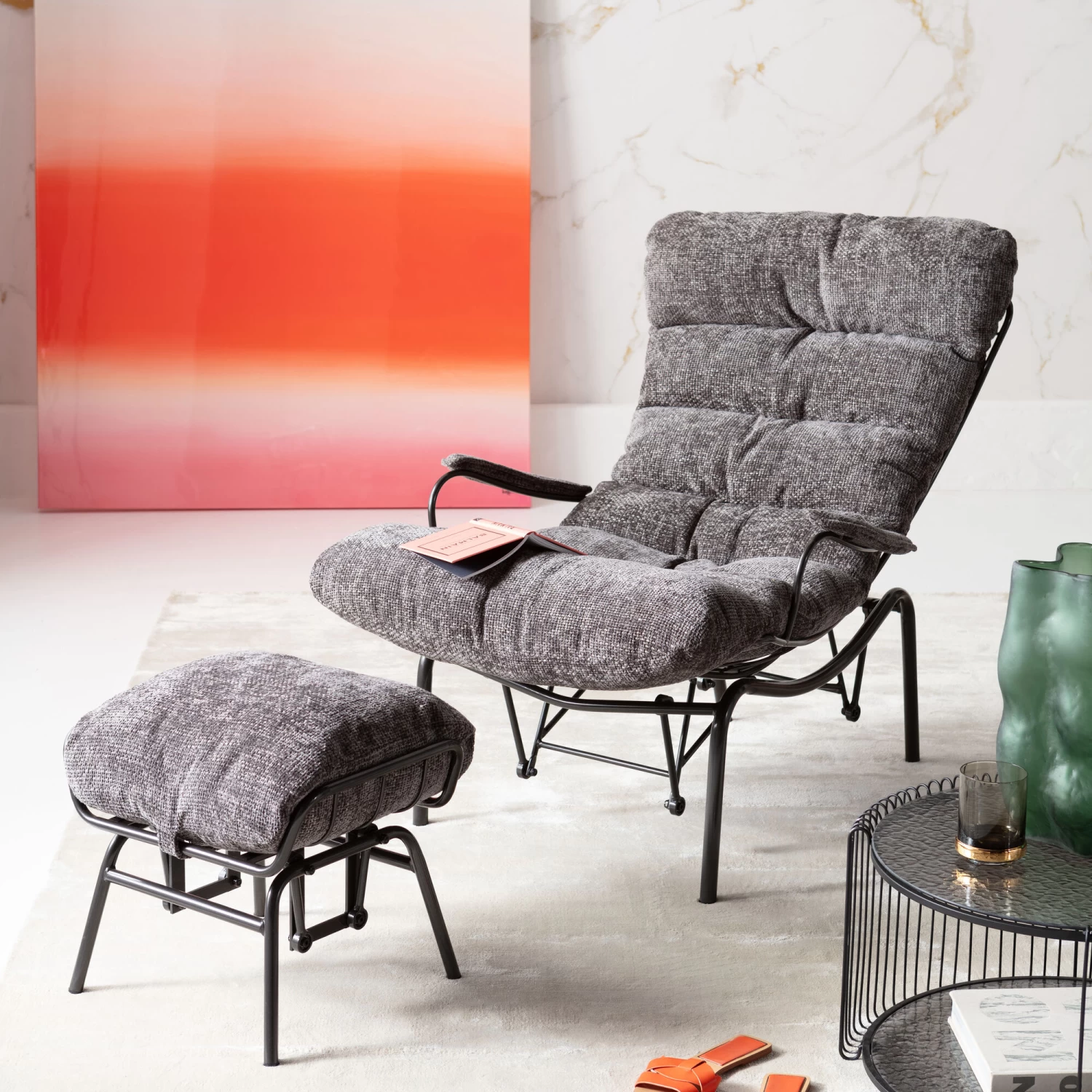 - Set aus Lounge-Sessel und Fußhocker in Grau mit Wohlfühl-Faktor, 105 x 83 x 52 Zentimeter (H/B/T), Hocker 42x46x42 Zentimeter