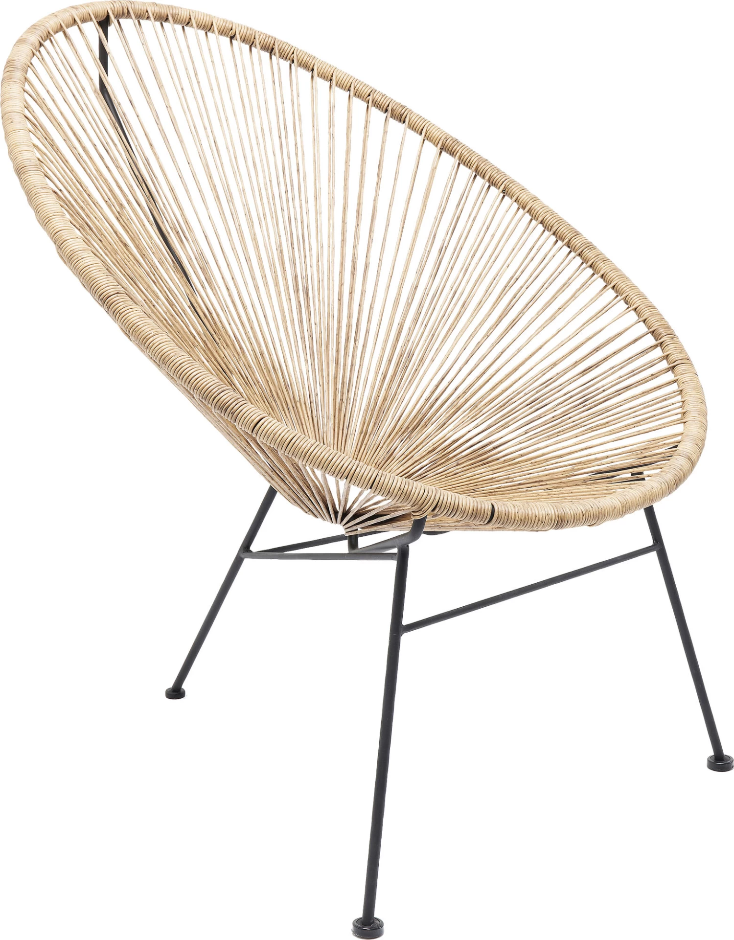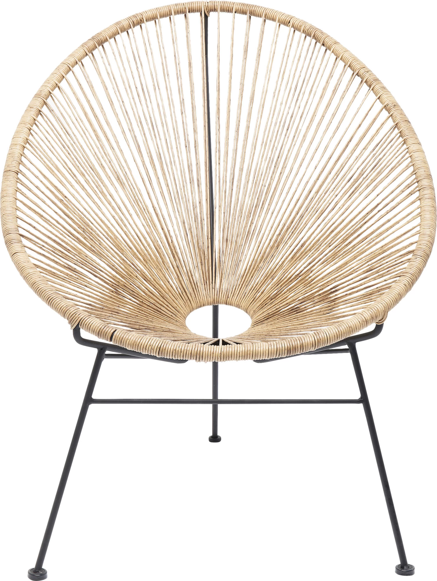 - Outdoor-geeigneter Designersessel in Natur mit schwarzem Gestell, für Terrasse, Garten und Balkon