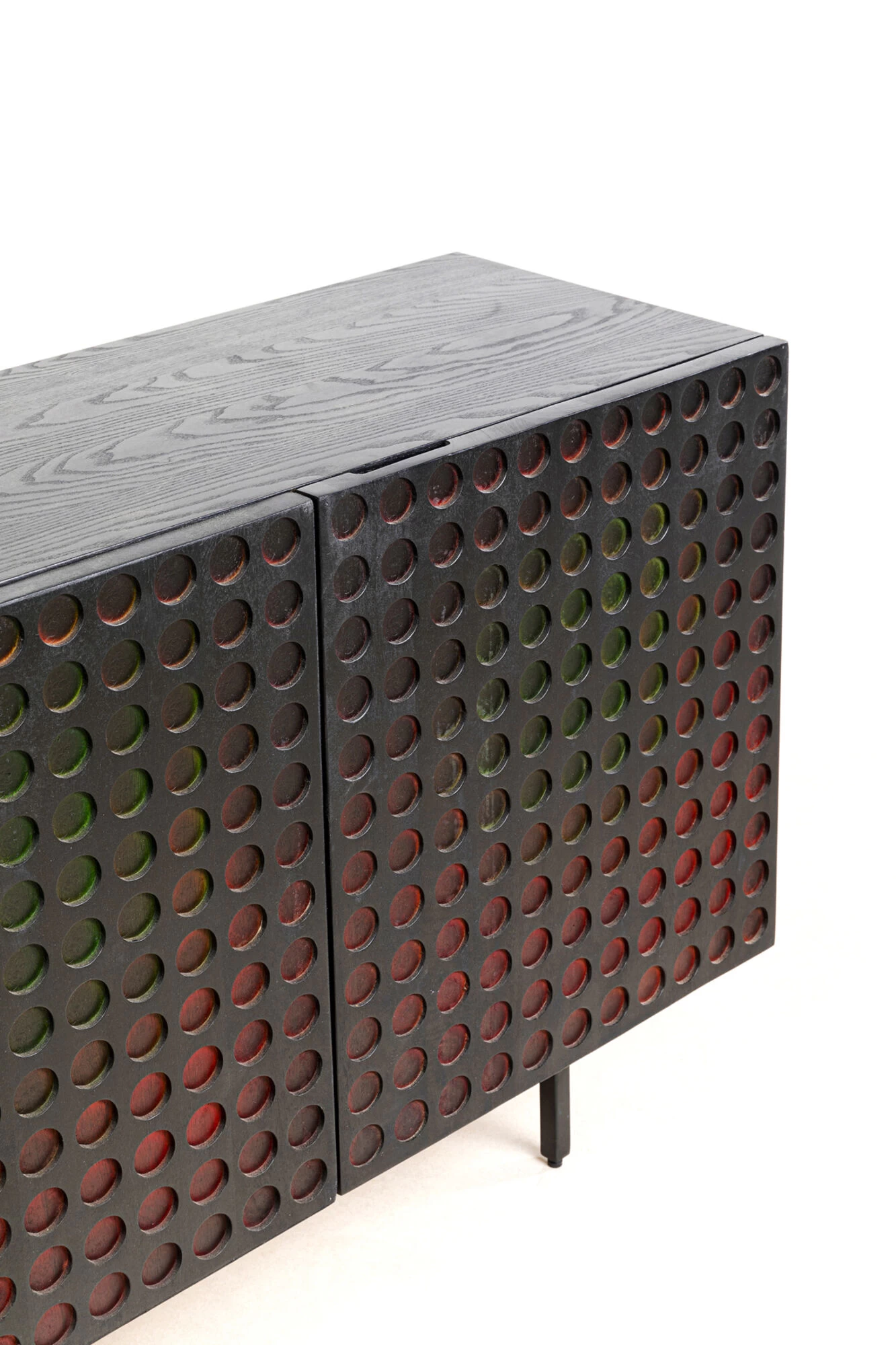 - Handgefertigtes Unikat aus lackiertem Mangoholz mit interessantem Frontdesign
